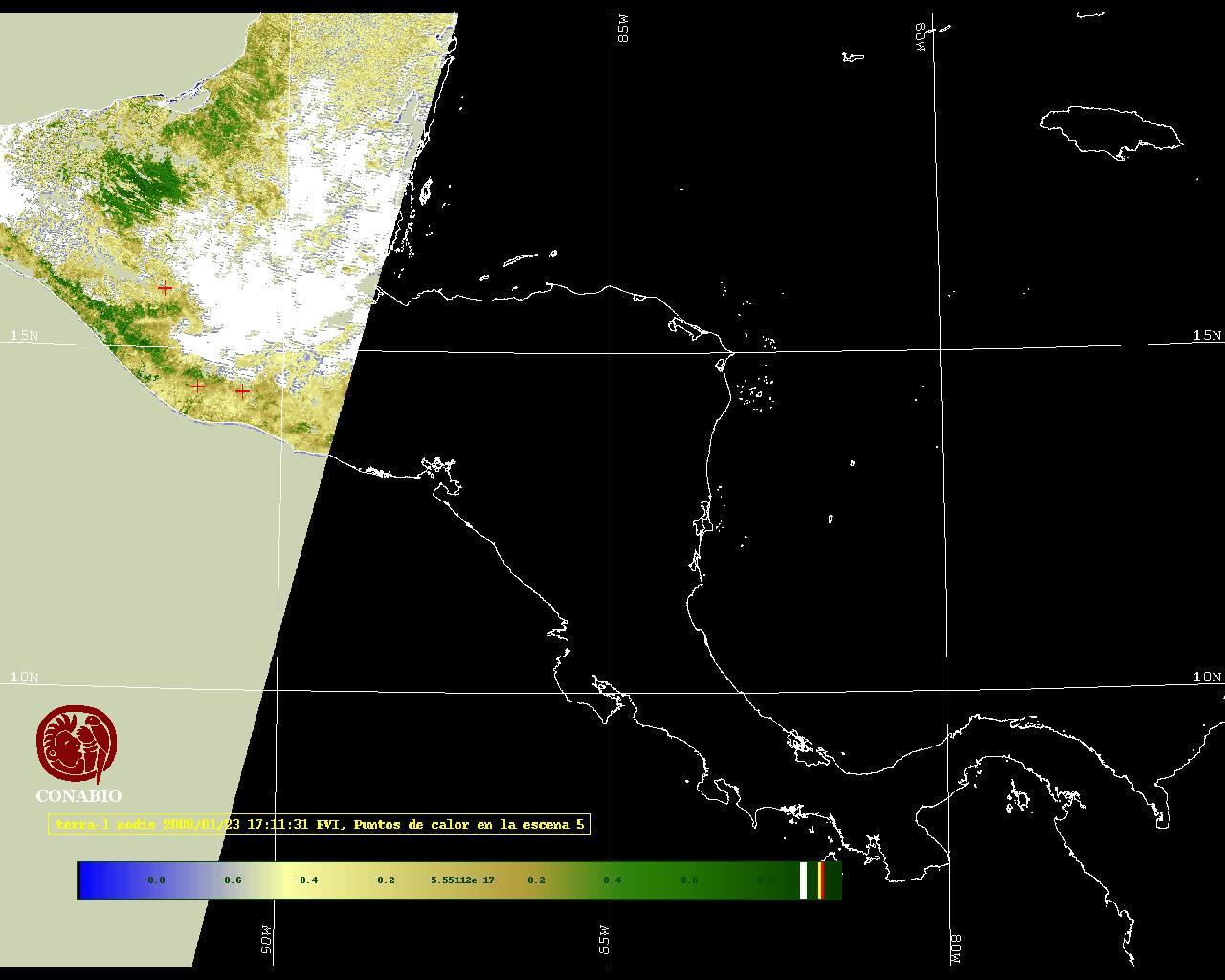 Se considera como punto de calor al elemento espacial mínimo de la imagen (pixel) que reporta una temperatura elevada. Para las imágenes diurnas la temperatura mínima considera es de 42C y para las imágenes nocturnas es de 25C. |
