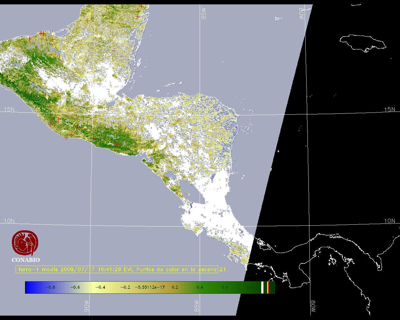 Los valores del índice van de -1 a 1, entre más cercano al valor 1 la vegetación presenta mayor vigor. Los índices de vegetación son utilizados para conocer el comportamiento de la vegetación tanto espacial como temporal. |