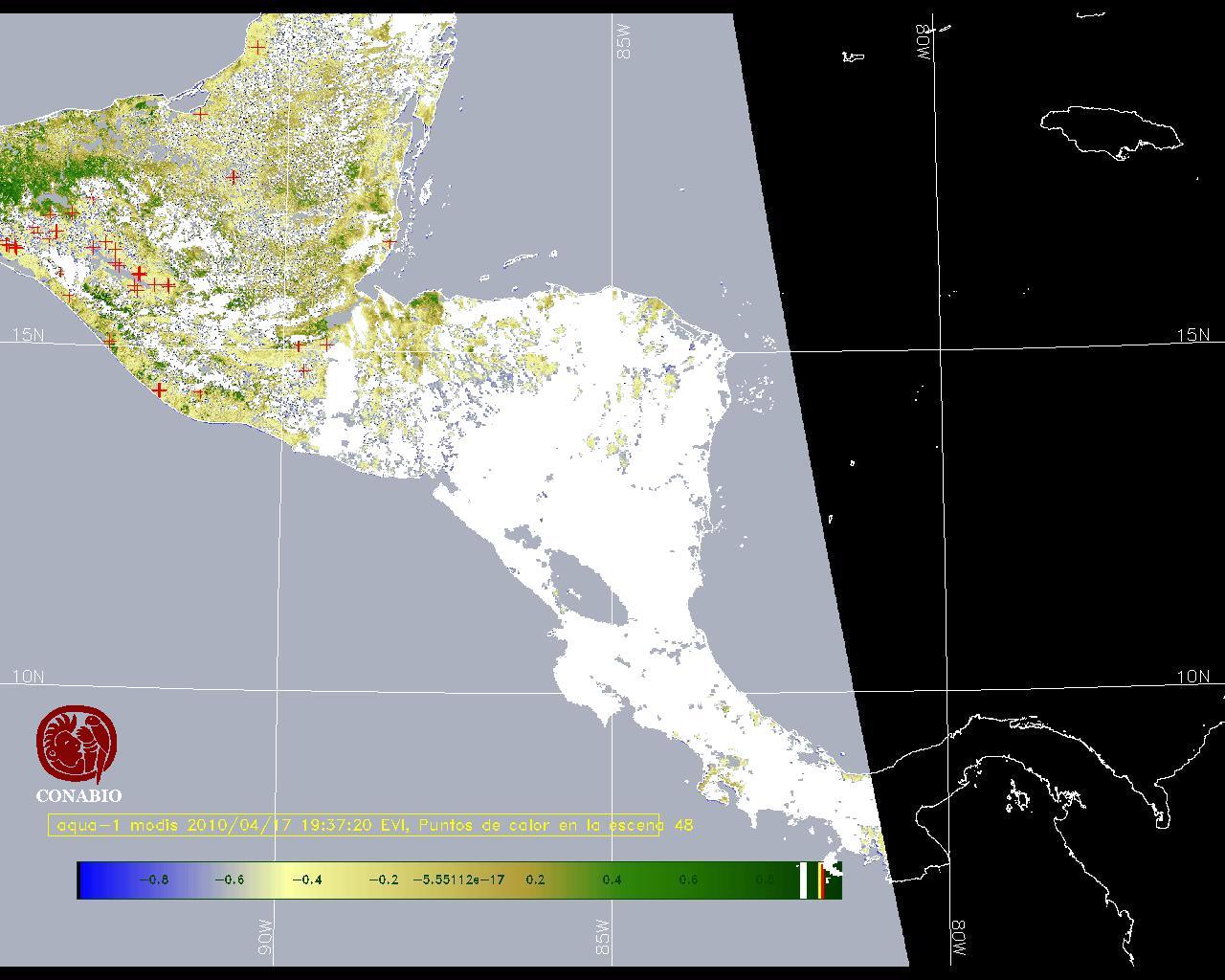 Se considera como punto de calor al elemento espacial mínimo de la imagen (pixel) que reporta una temperatura elevada. Para las imágenes diurnas la temperatura mínima considera es de 42C y para las imágenes nocturnas es de 25C. |