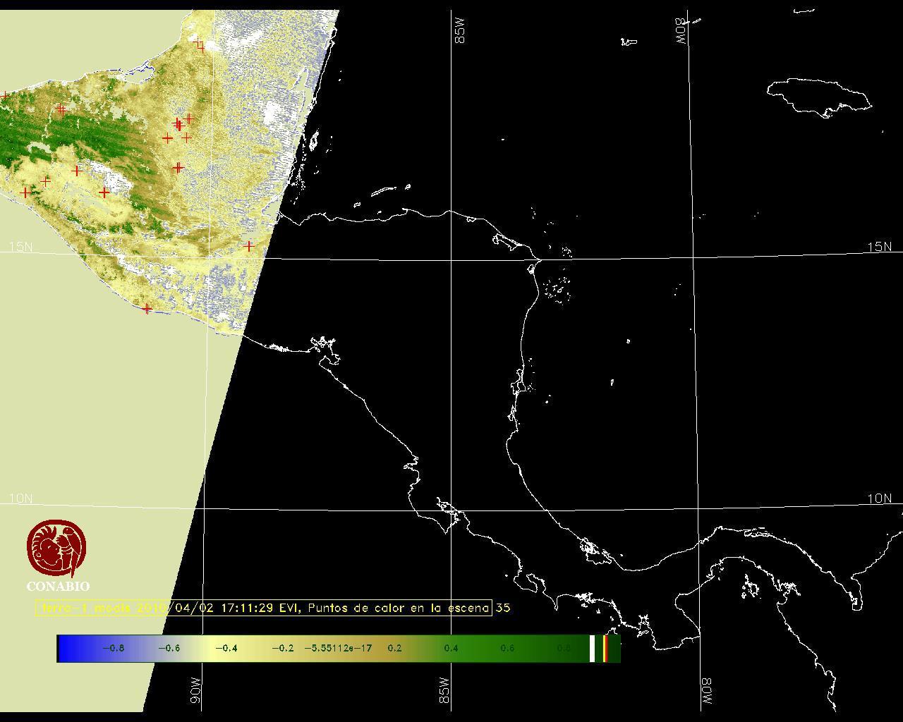 Se considera como punto de calor al elemento espacial mínimo de la imagen (pixel) que reporta una temperatura elevada. Para las imágenes diurnas la temperatura mínima considera es de 42C y para las imágenes nocturnas es de 25C. |