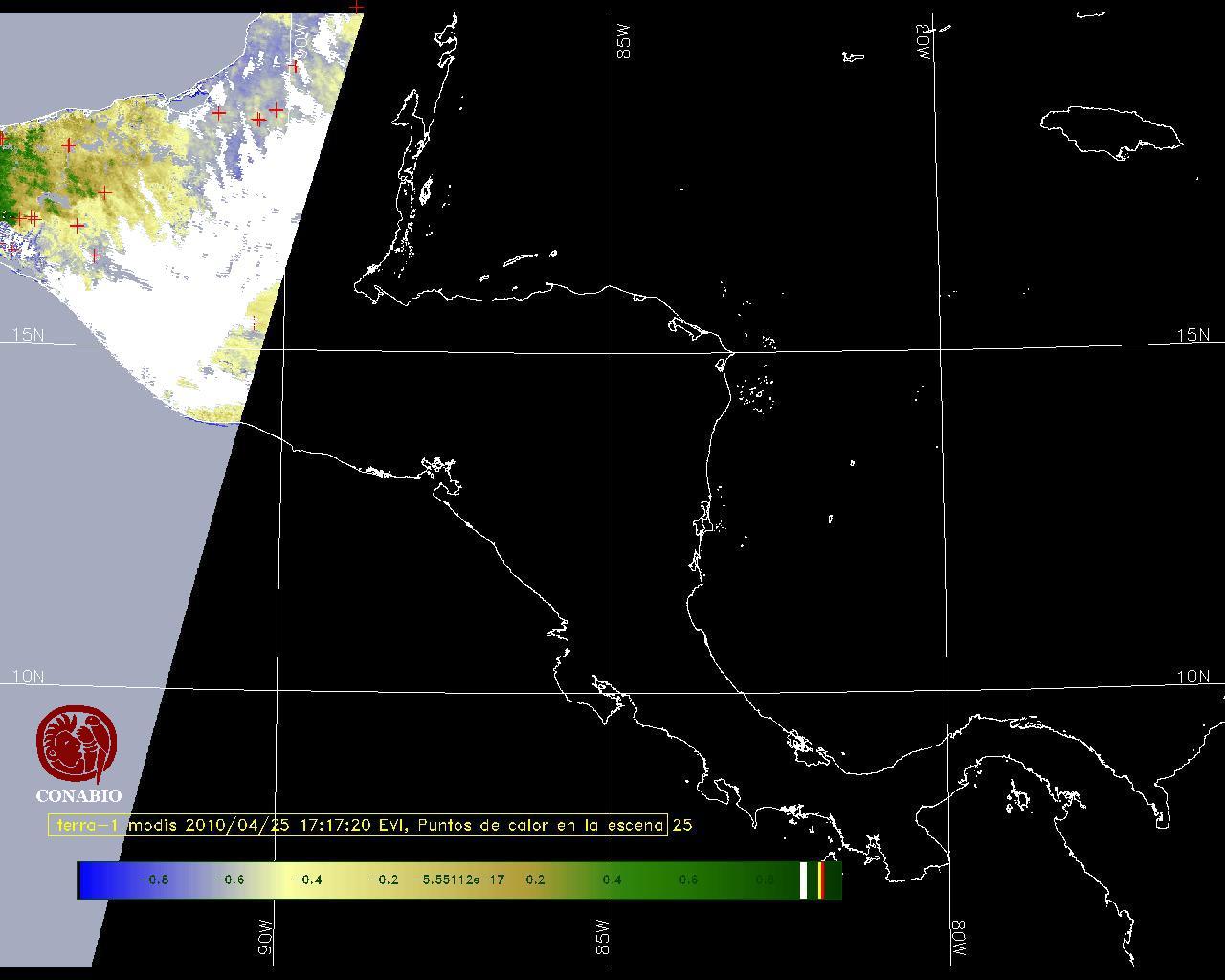 Se considera como punto de calor al elemento espacial mínimo de la imagen (pixel) que reporta una temperatura elevada. Para las imágenes diurnas la temperatura mínima considera es de 42C y para las imágenes nocturnas es de 25C. |