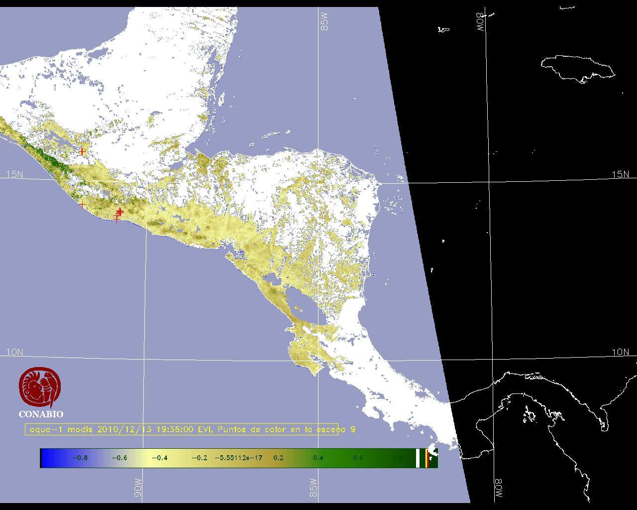 Se considera como punto de calor al elemento espacial mínimo de la imagen (pixel) que reporta una temperatura elevada. Para las imágenes diurnas la temperatura mínima considera es de 42C y para las imágenes nocturnas es de 25C. |