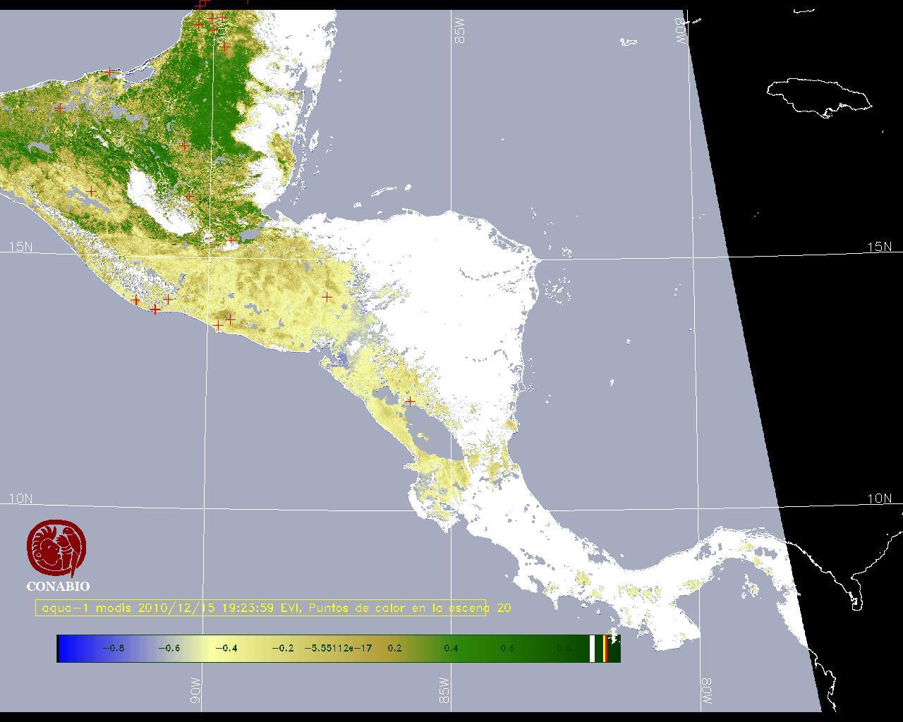 Se considera como punto de calor al elemento espacial mínimo de la imagen (pixel) que reporta una temperatura elevada. Para las imágenes diurnas la temperatura mínima considera es de 42C y para las imágenes nocturnas es de 25C. |