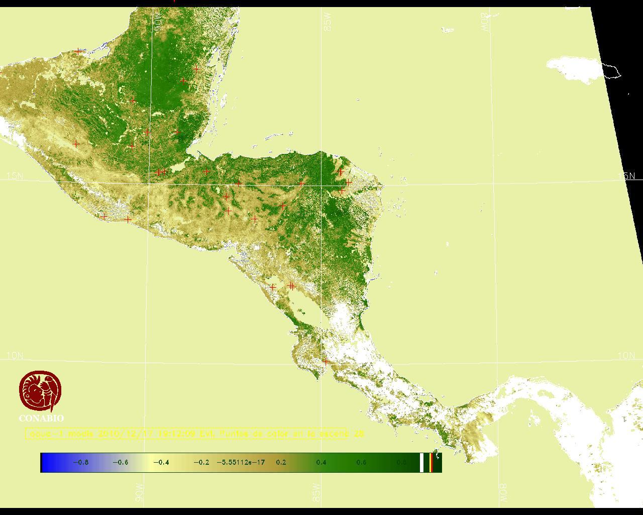 Los valores del índice van de -1 a 1, entre más cercano al valor 1 la vegetación presenta mayor vigor. Los índices de vegetación son utilizados para conocer el comportamiento de la vegetación tanto espacial como temporal. |