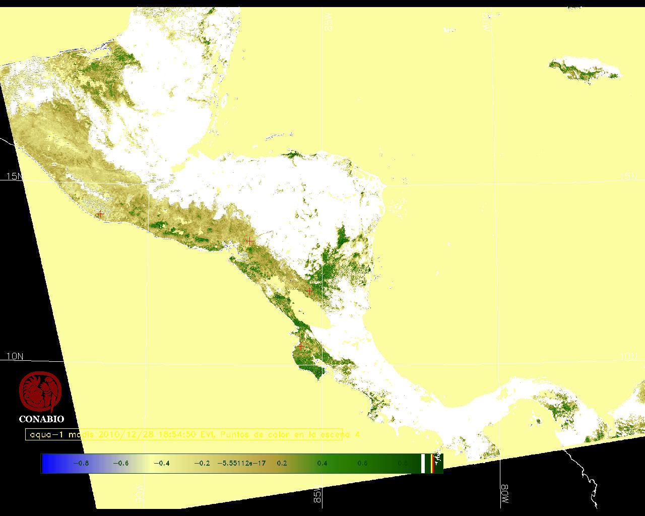 Se considera como punto de calor al elemento espacial mínimo de la imagen (pixel) que reporta una temperatura elevada. Para las imágenes diurnas la temperatura mínima considera es de 42C y para las imágenes nocturnas es de 25C. |