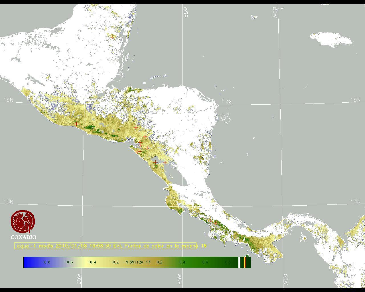 Se considera como punto de calor al elemento espacial mínimo de la imagen (pixel) que reporta una temperatura elevada. Para las imágenes diurnas la temperatura mínima considera es de 42C y para las imágenes nocturnas es de 25C. |