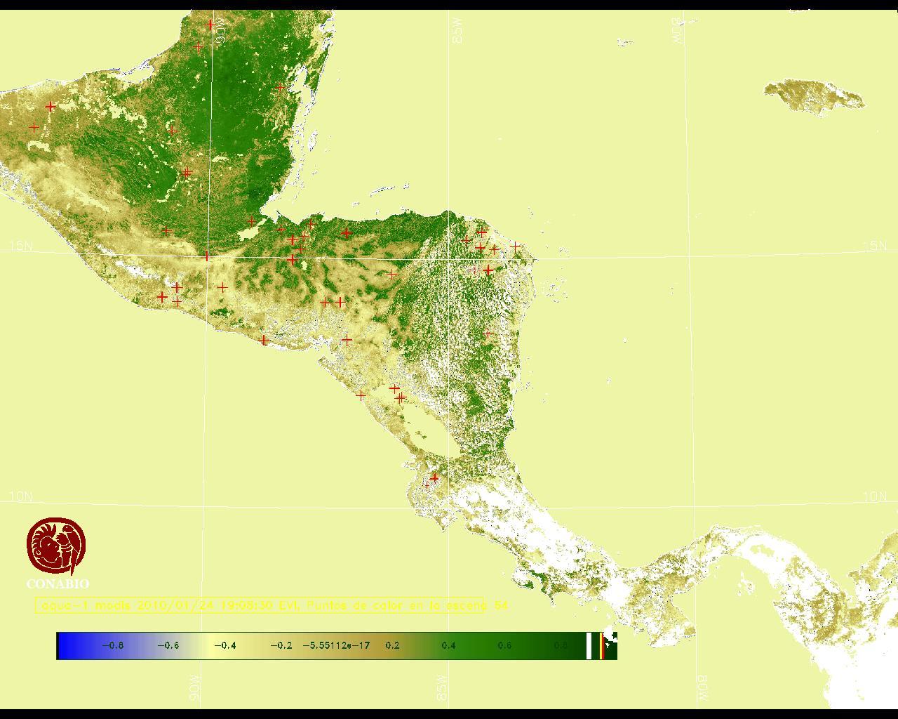 Se considera como punto de calor al elemento espacial mínimo de la imagen (pixel) que reporta una temperatura elevada. Para las imágenes diurnas la temperatura mínima considera es de 42C y para las imágenes nocturnas es de 25C. |