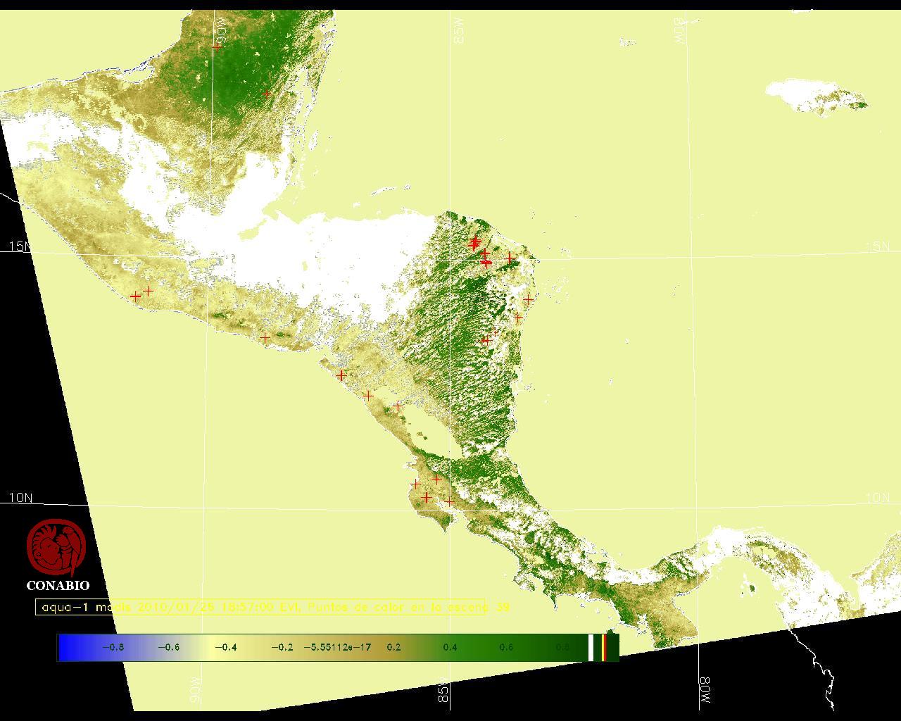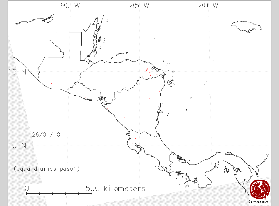 Se considera como punto de calor al elemento espacial mínimo de la imagen (pixel) que reporta una temperatura elevada. Para las imágenes diurnas la temperatura mínima considera es de 42C y para las imágenes nocturnas es de 25C. |