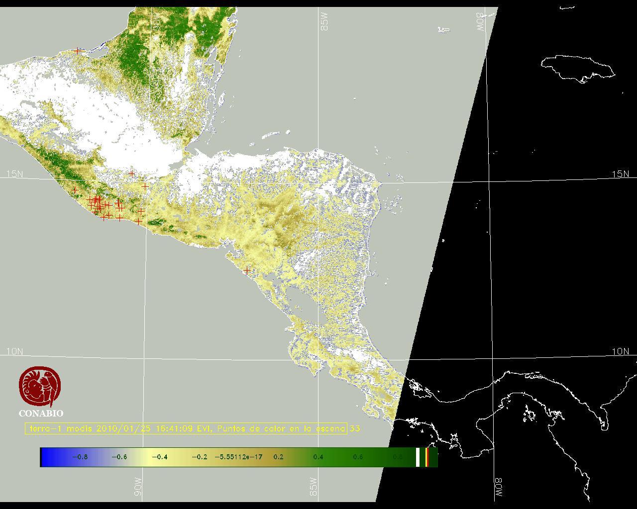 Se considera como punto de calor al elemento espacial mínimo de la imagen (pixel) que reporta una temperatura elevada. Para las imágenes diurnas la temperatura mínima considera es de 42C y para las imágenes nocturnas es de 25C. |