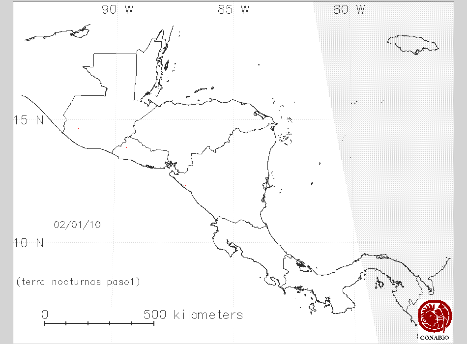Se considera como punto de calor al elemento espacial mínimo de la imagen (pixel) que reporta una temperatura elevada. Para las imágenes diurnas la temperatura mínima considera es de 42C y para las imágenes nocturnas es de 25C. |