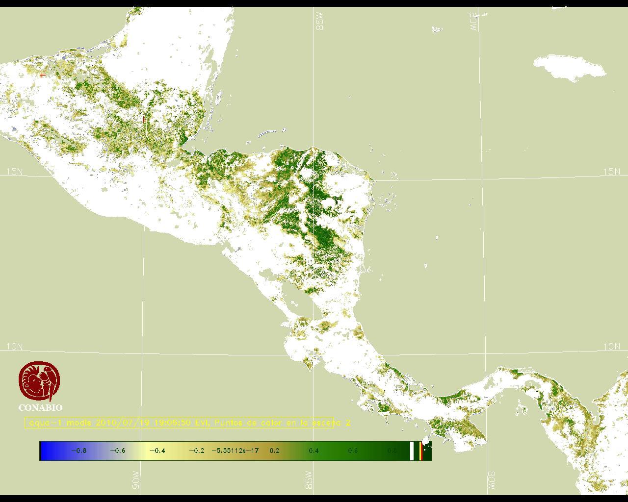 Se considera como punto de calor al elemento espacial mínimo de la imagen (pixel) que reporta una temperatura elevada. Para las imágenes diurnas la temperatura mínima considera es de 42C y para las imágenes nocturnas es de 25C. |