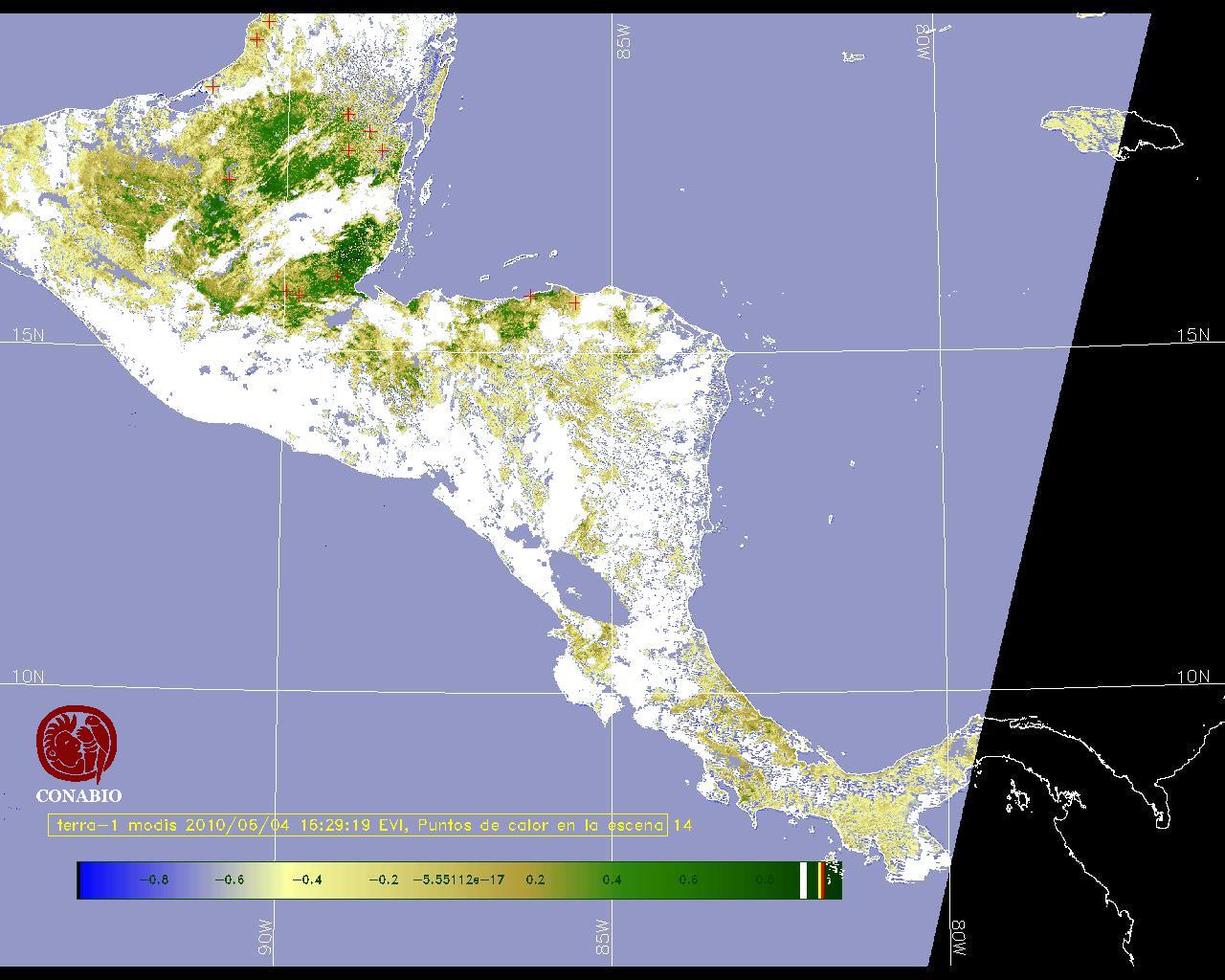 Se considera como punto de calor al elemento espacial mínimo de la imagen (pixel) que reporta una temperatura elevada. Para las imágenes diurnas la temperatura mínima considera es de 42C y para las imágenes nocturnas es de 25C. |