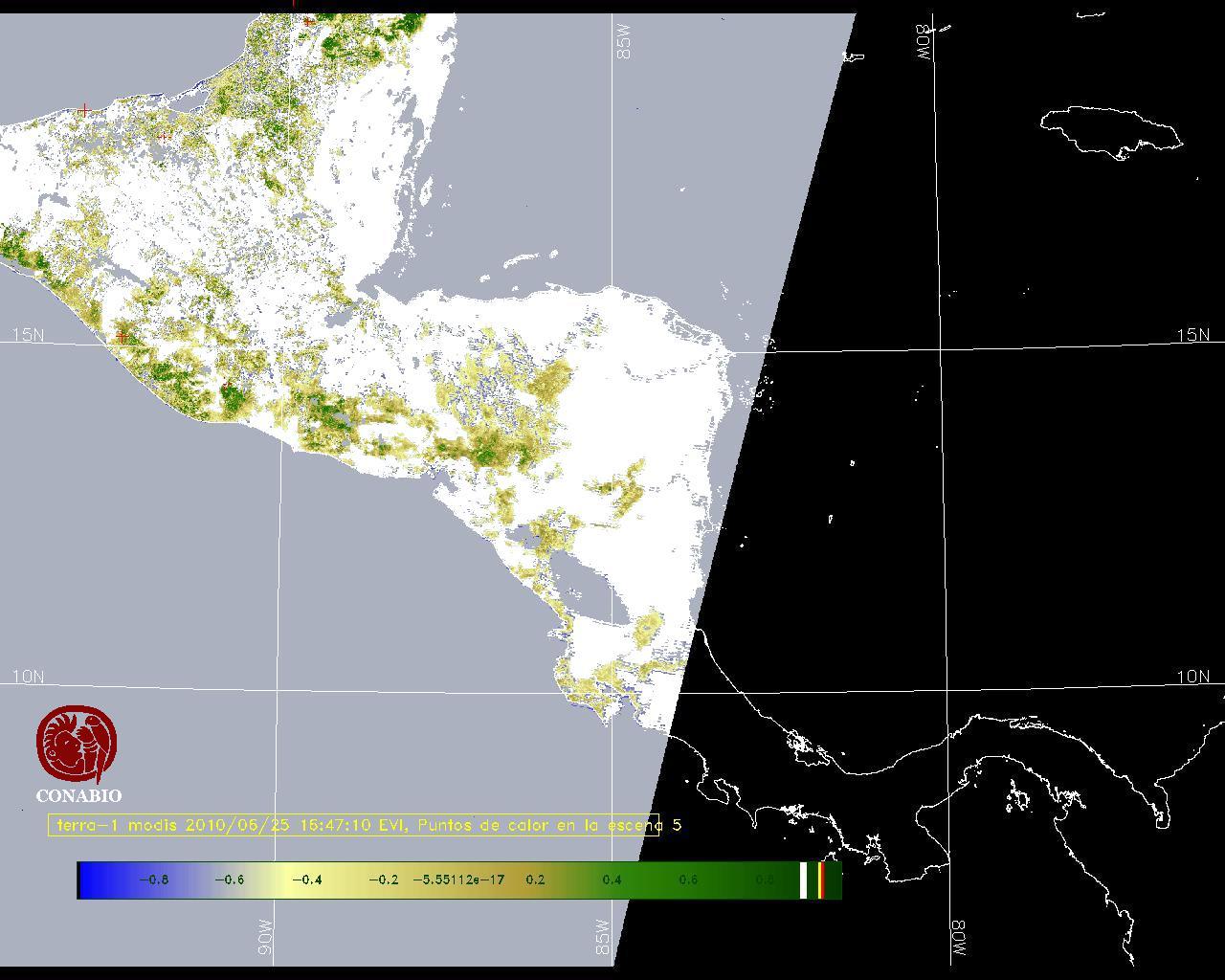 Se considera como punto de calor al elemento espacial mínimo de la imagen (pixel) que reporta una temperatura elevada. Para las imágenes diurnas la temperatura mínima considera es de 42C y para las imágenes nocturnas es de 25C. |