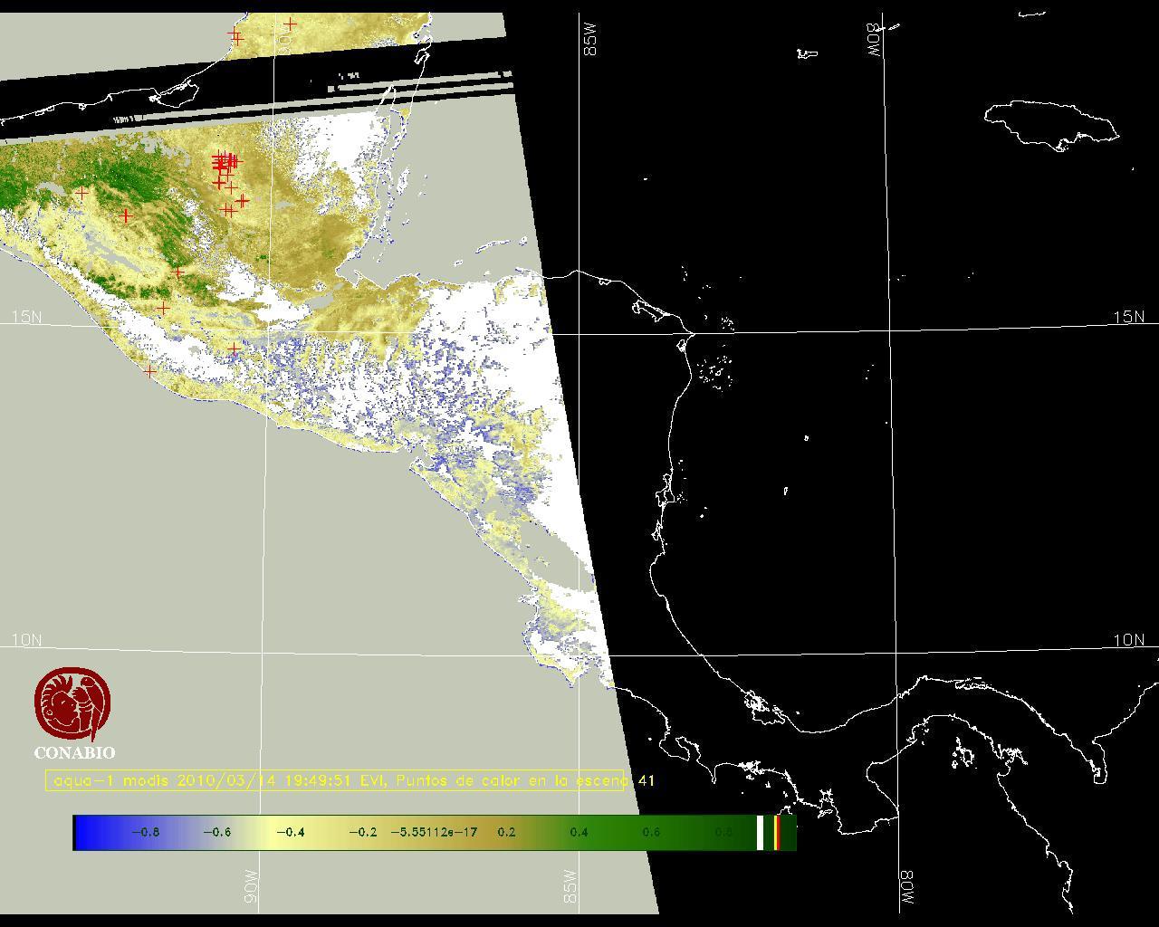 Se considera como punto de calor al elemento espacial mínimo de la imagen (pixel) que reporta una temperatura elevada. Para las imágenes diurnas la temperatura mínima considera es de 42C y para las imágenes nocturnas es de 25C. |