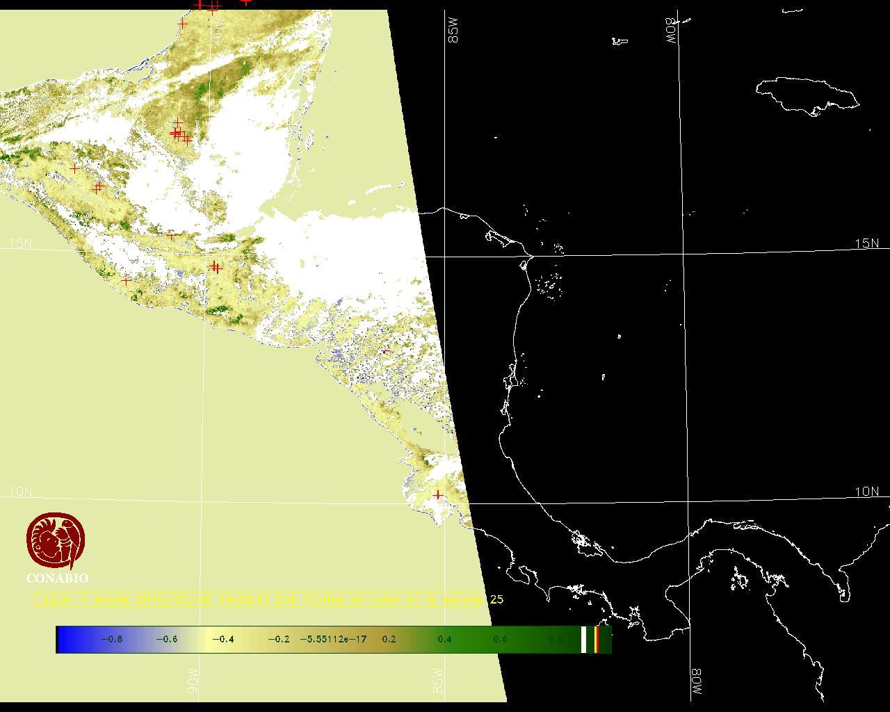 Se considera como punto de calor al elemento espacial mínimo de la imagen (pixel) que reporta una temperatura elevada. Para las imágenes diurnas la temperatura mínima considera es de 42C y para las imágenes nocturnas es de 25C. |