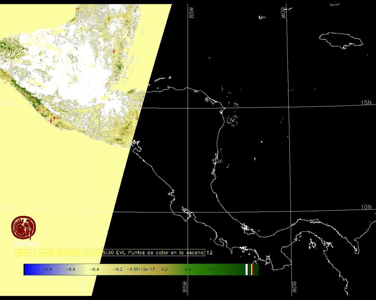 Se considera como punto de calor al elemento espacial mínimo de la imagen (pixel) que reporta una temperatura elevada. Para las imágenes diurnas la temperatura mínima considera es de 42C y para las imágenes nocturnas es de 25C. |