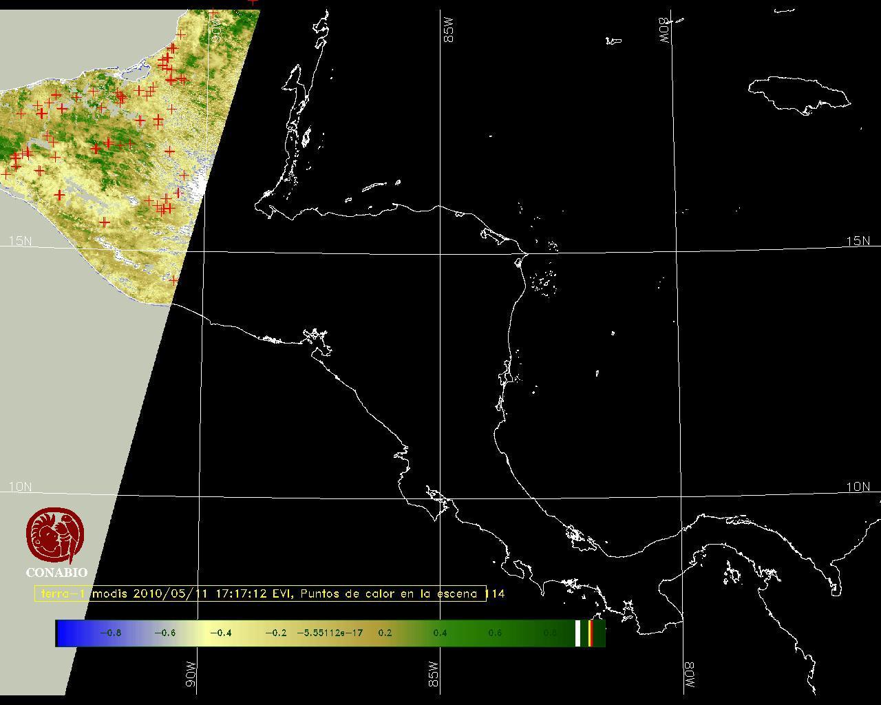 Se considera como punto de calor al elemento espacial mínimo de la imagen (pixel) que reporta una temperatura elevada. Para las imágenes diurnas la temperatura mínima considera es de 42C y para las imágenes nocturnas es de 25C. |