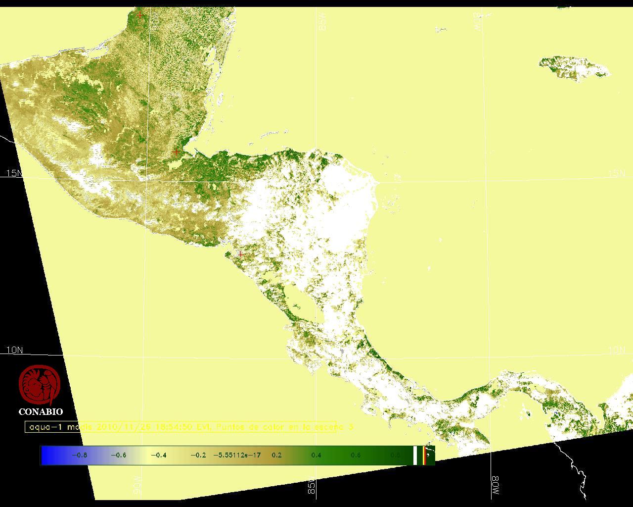 Se considera como punto de calor al elemento espacial mínimo de la imagen (pixel) que reporta una temperatura elevada. Para las imágenes diurnas la temperatura mínima considera es de 42C y para las imágenes nocturnas es de 25C. |
