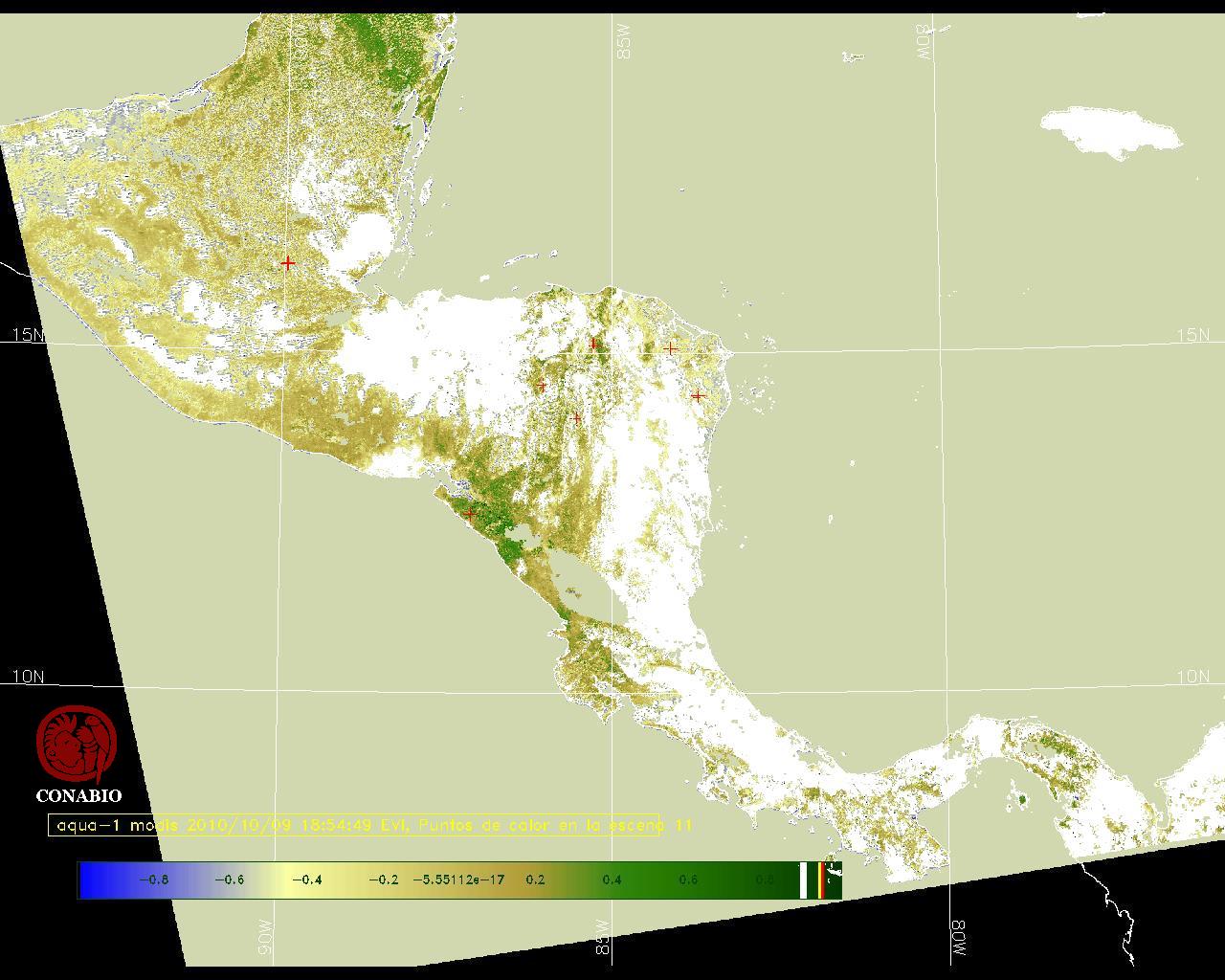 Se considera como punto de calor al elemento espacial mínimo de la imagen (pixel) que reporta una temperatura elevada. Para las imágenes diurnas la temperatura mínima considera es de 42C y para las imágenes nocturnas es de 25C. |