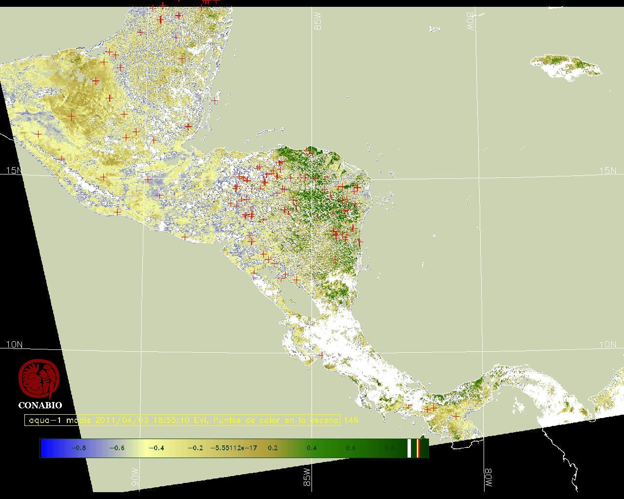 Se considera como punto de calor al elemento espacial mínimo de la imagen (pixel) que reporta una temperatura elevada. Para las imágenes diurnas la temperatura mínima considera es de 42C y para las imágenes nocturnas es de 25C. |