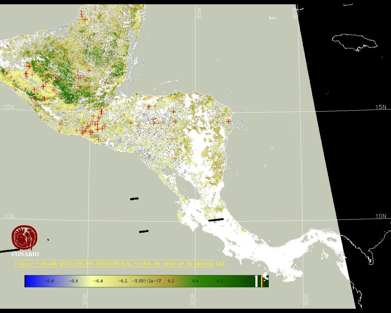 Se considera como punto de calor al elemento espacial mínimo de la imagen (pixel) que reporta una temperatura elevada. Para las imágenes diurnas la temperatura mínima considera es de 42C y para las imágenes nocturnas es de 25C. |