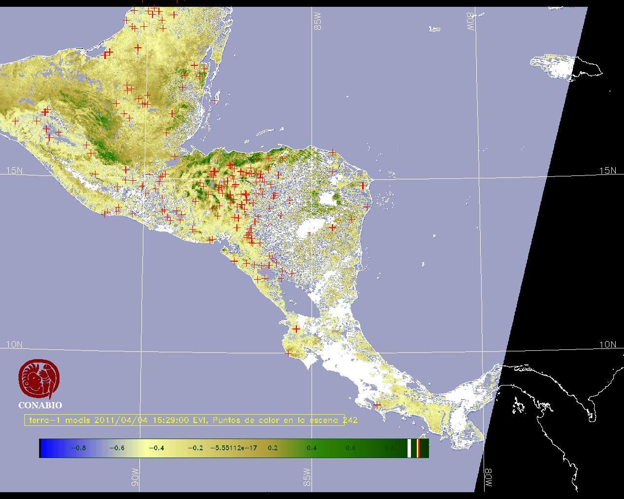Se considera como punto de calor al elemento espacial mínimo de la imagen (pixel) que reporta una temperatura elevada. Para las imágenes diurnas la temperatura mínima considera es de 42C y para las imágenes nocturnas es de 25C. |