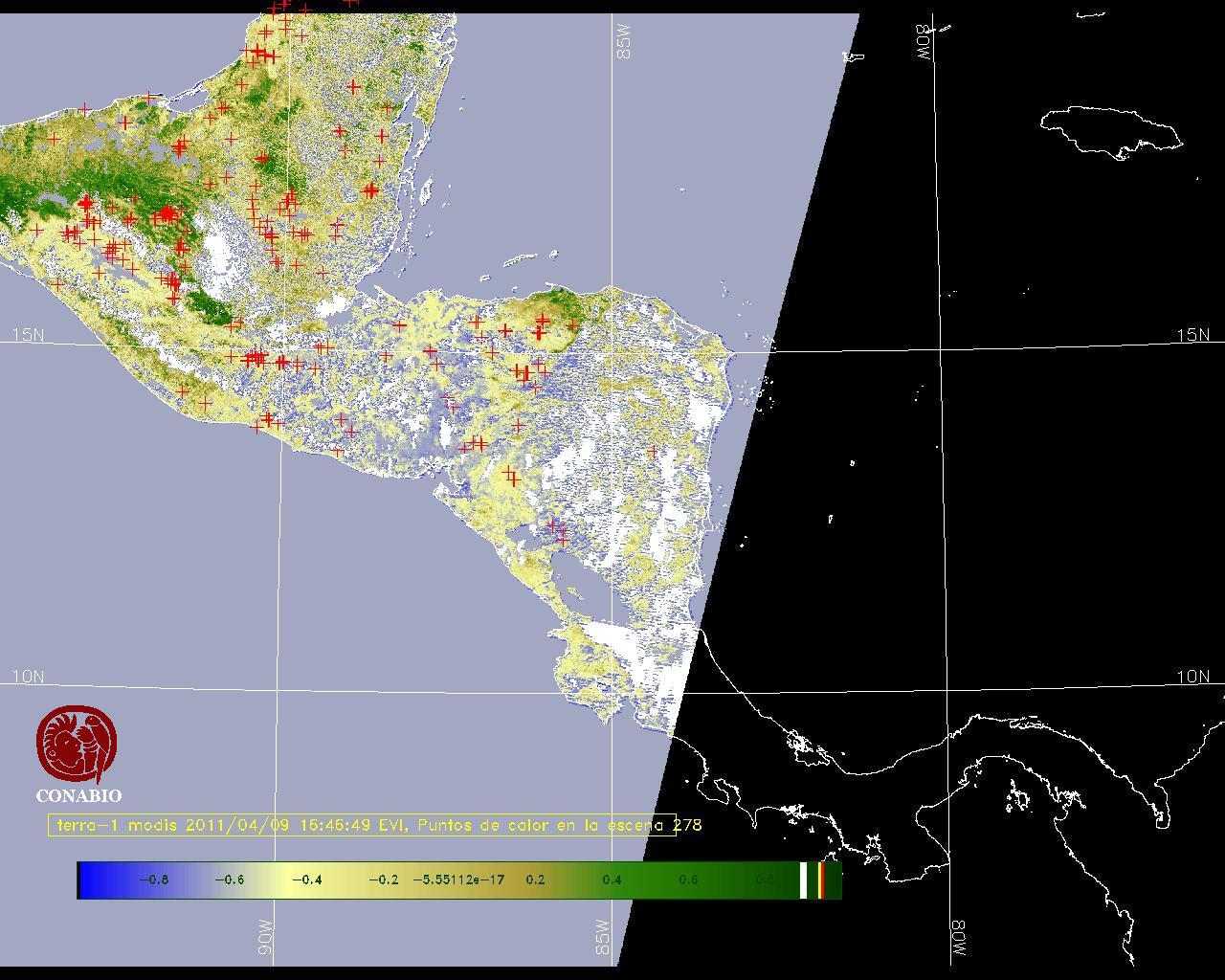 Se considera como punto de calor al elemento espacial mínimo de la imagen (pixel) que reporta una temperatura elevada. Para las imágenes diurnas la temperatura mínima considera es de 42C y para las imágenes nocturnas es de 25C. |