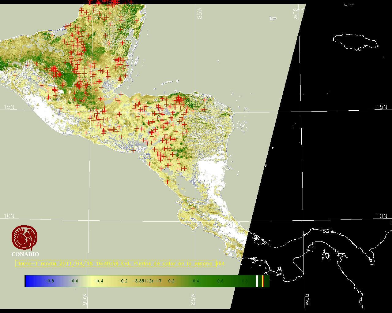 Se considera como punto de calor al elemento espacial mínimo de la imagen (pixel) que reporta una temperatura elevada. Para las imágenes diurnas la temperatura mínima considera es de 42C y para las imágenes nocturnas es de 25C. |