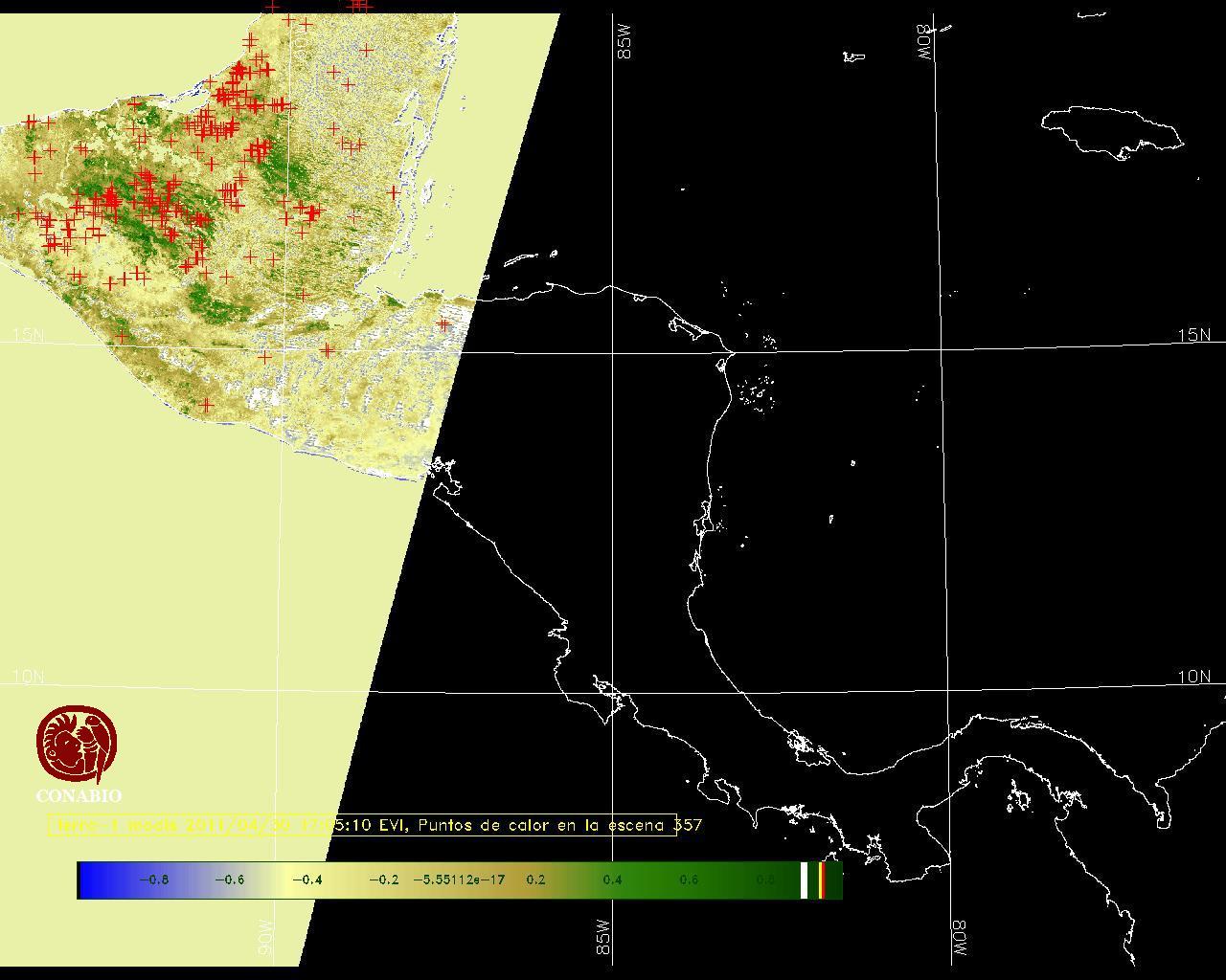 Se considera como punto de calor al elemento espacial mínimo de la imagen (pixel) que reporta una temperatura elevada. Para las imágenes diurnas la temperatura mínima considera es de 42C y para las imágenes nocturnas es de 25C. |