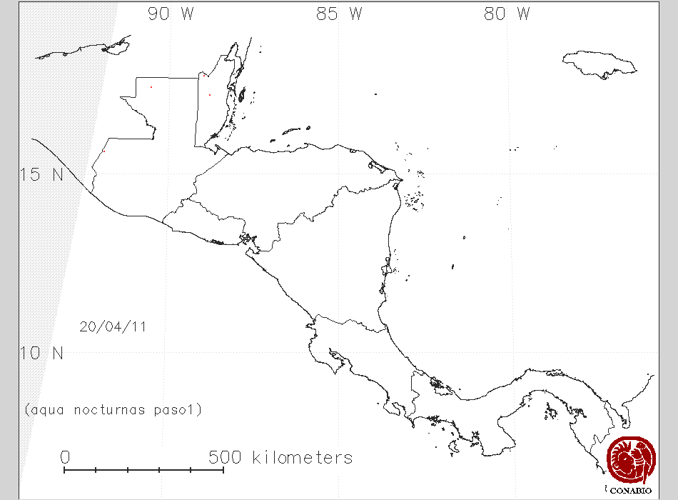 Se considera como punto de calor al elemento espacial mínimo de la imagen (pixel) que reporta una temperatura elevada. Para las imágenes diurnas la temperatura mínima considera es de 42C y para las imágenes nocturnas es de 25C. |
