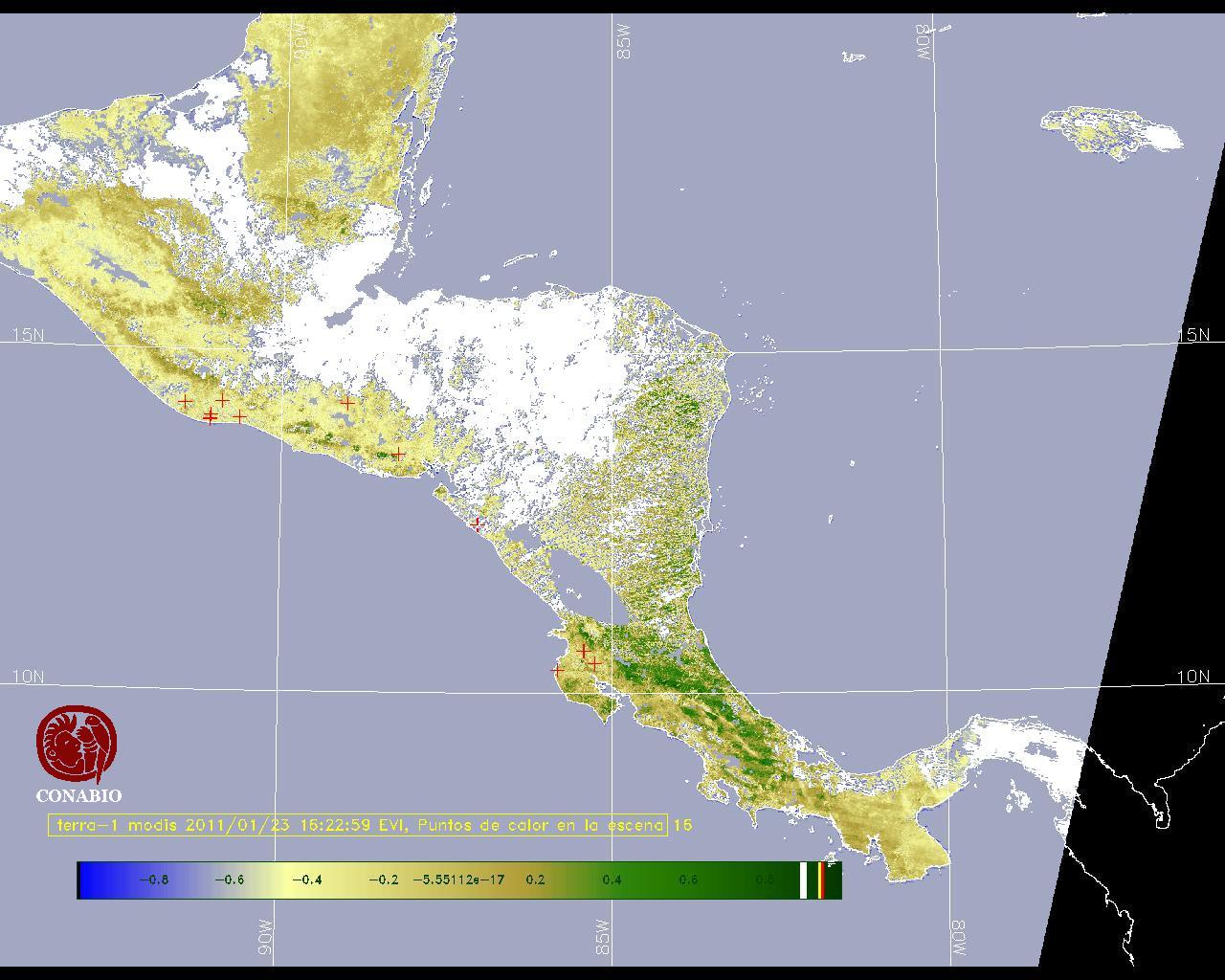 Se considera como punto de calor al elemento espacial mínimo de la imagen (pixel) que reporta una temperatura elevada. Para las imágenes diurnas la temperatura mínima considera es de 42C y para las imágenes nocturnas es de 25C. |