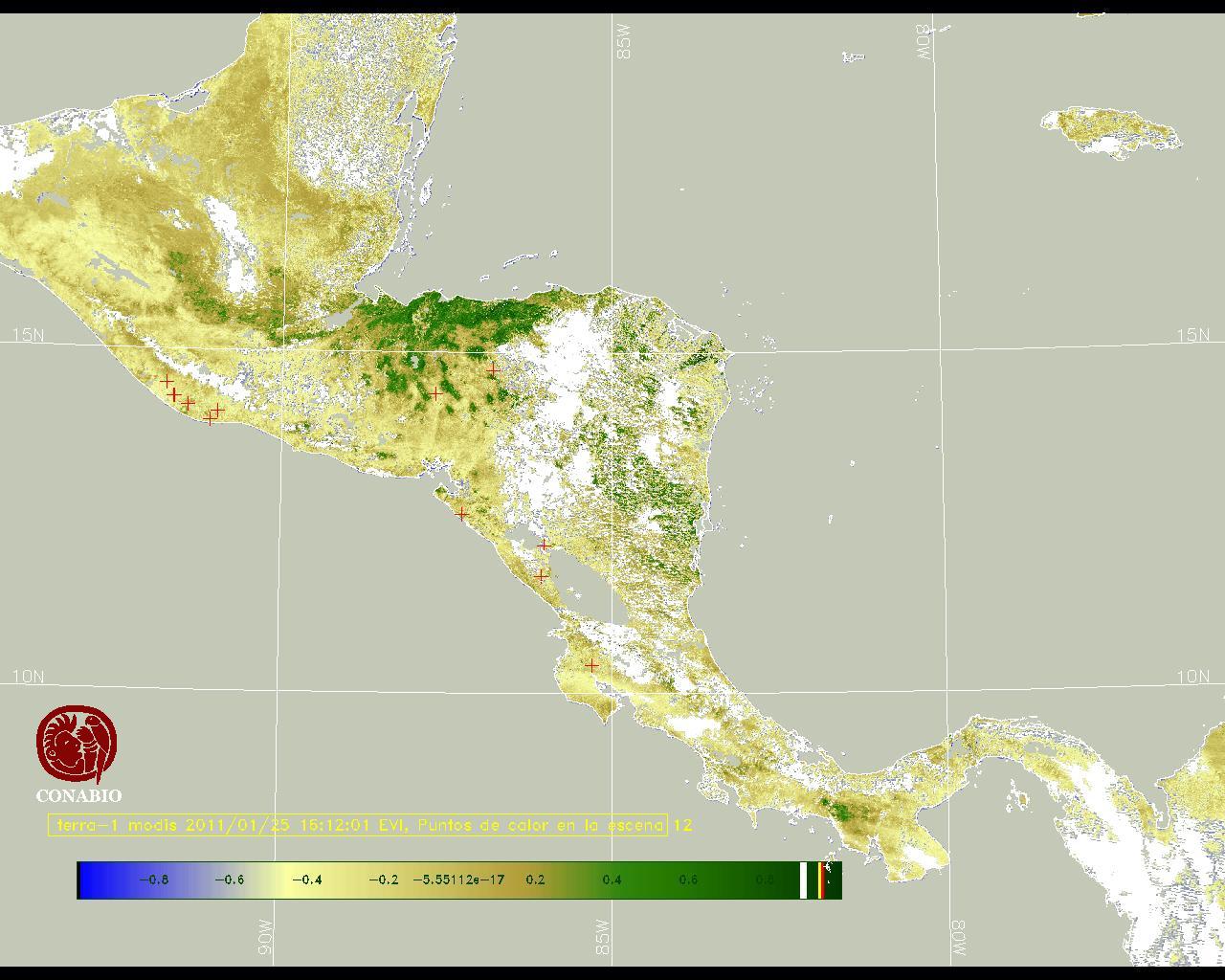 Se considera como punto de calor al elemento espacial mínimo de la imagen (pixel) que reporta una temperatura elevada. Para las imágenes diurnas la temperatura mínima considera es de 42C y para las imágenes nocturnas es de 25C. |