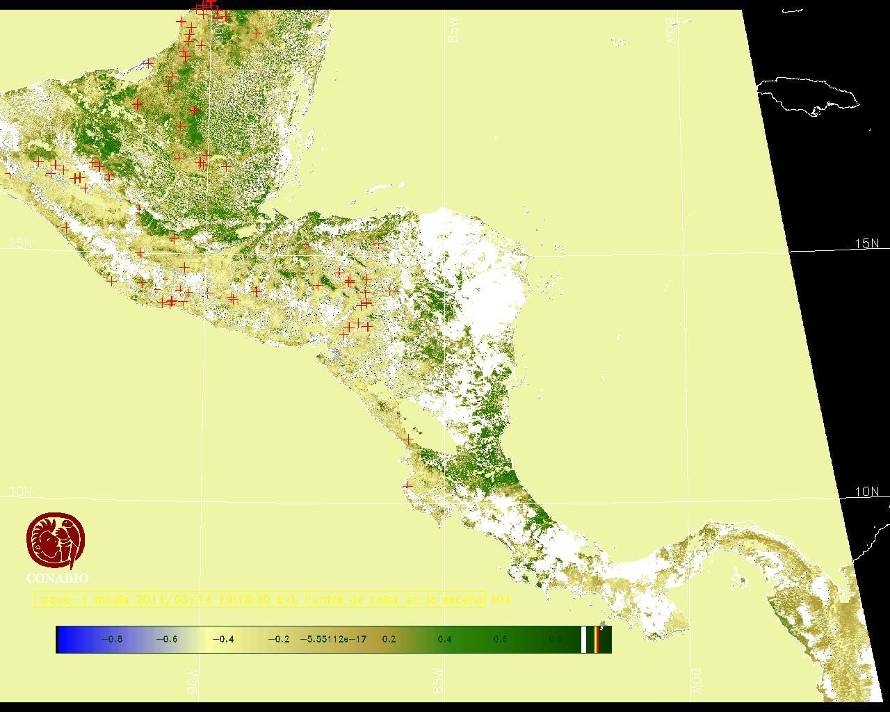 Se considera como punto de calor al elemento espacial mínimo de la imagen (pixel) que reporta una temperatura elevada. Para las imágenes diurnas la temperatura mínima considera es de 42C y para las imágenes nocturnas es de 25C. |