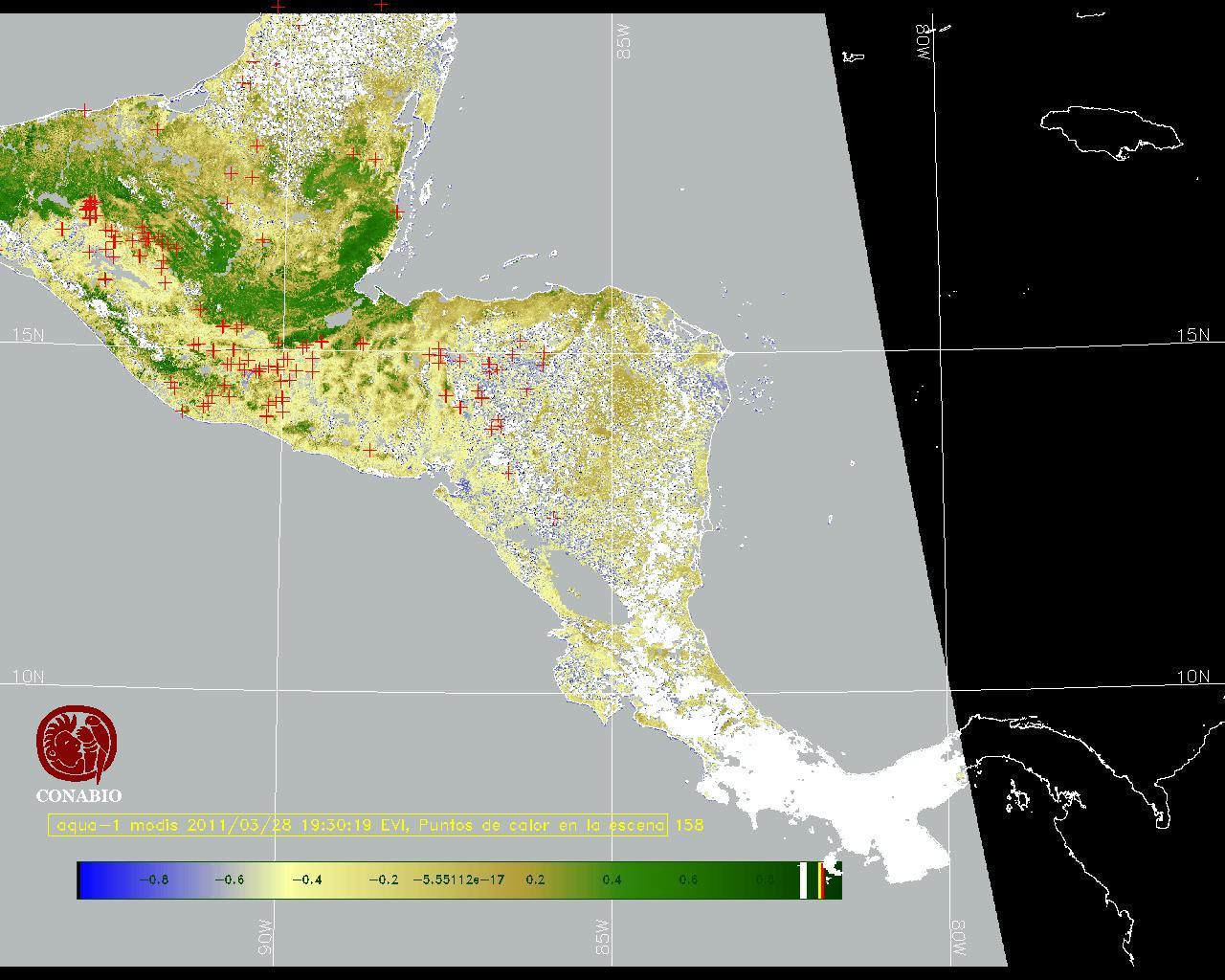 Se considera como punto de calor al elemento espacial mínimo de la imagen (pixel) que reporta una temperatura elevada. Para las imágenes diurnas la temperatura mínima considera es de 42C y para las imágenes nocturnas es de 25C. |