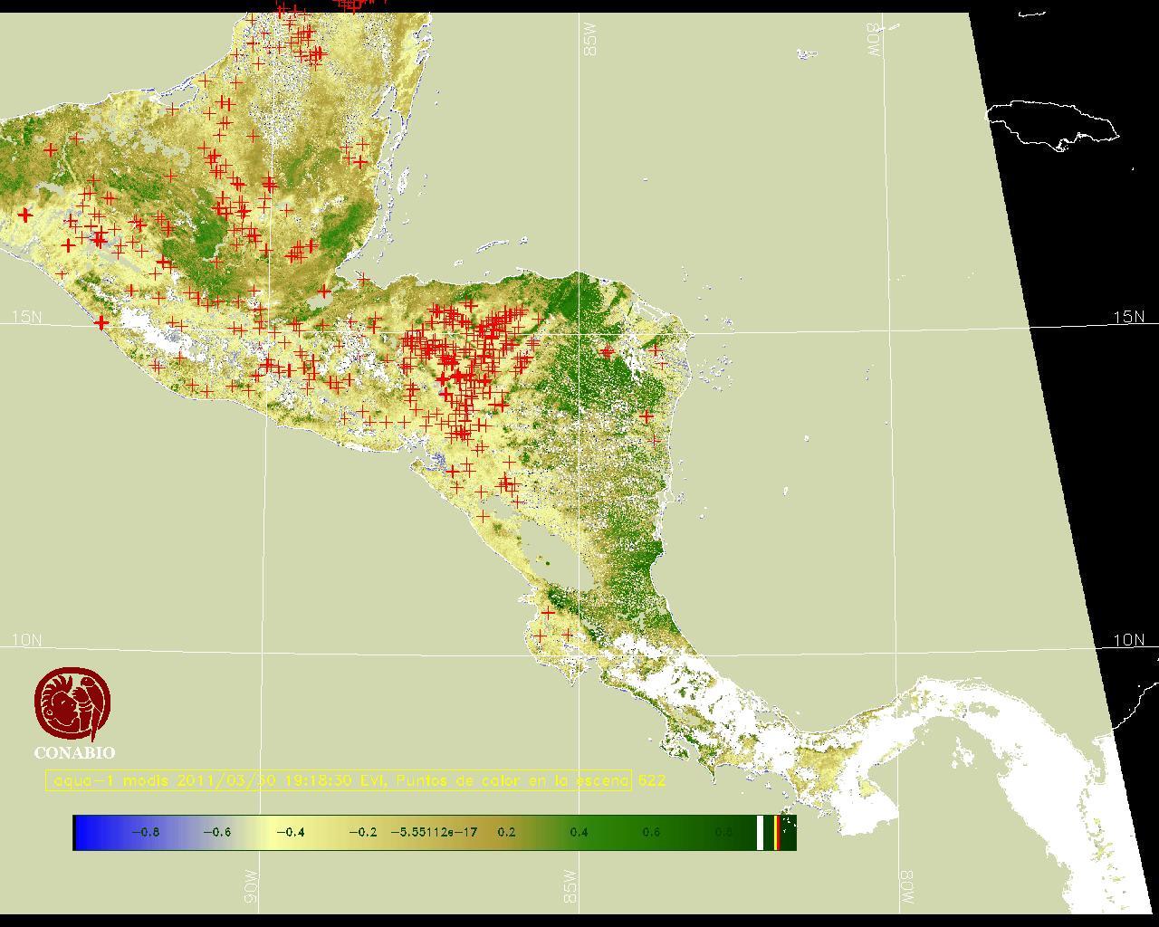 Se considera como punto de calor al elemento espacial mínimo de la imagen (pixel) que reporta una temperatura elevada. Para las imágenes diurnas la temperatura mínima considera es de 42C y para las imágenes nocturnas es de 25C. |
