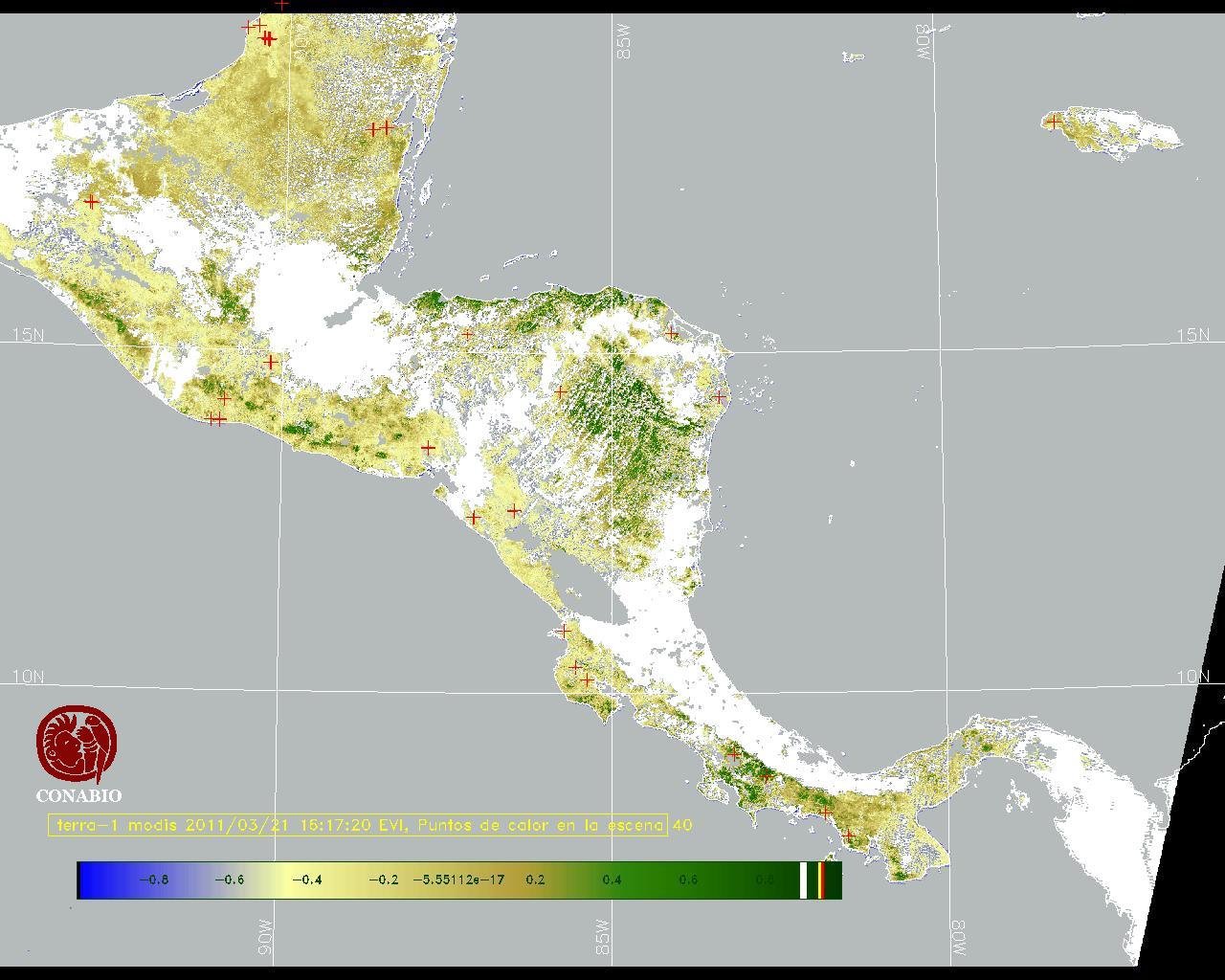 Se considera como punto de calor al elemento espacial mínimo de la imagen (pixel) que reporta una temperatura elevada. Para las imágenes diurnas la temperatura mínima considera es de 42C y para las imágenes nocturnas es de 25C. |