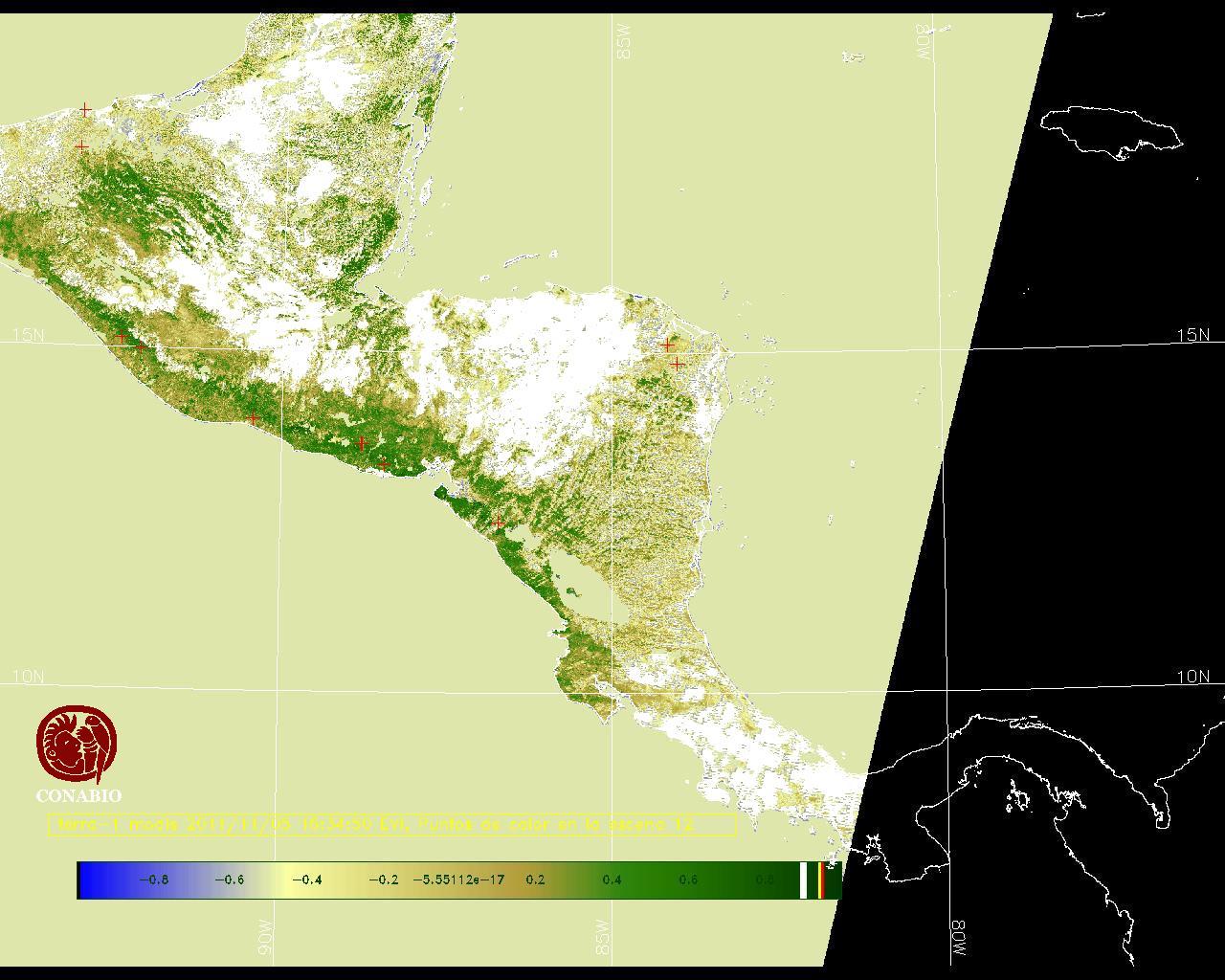 Los valores del índice van de -1 a 1, entre más cercano al valor 1 la vegetación presenta mayor vigor. Los índices de vegetación son utilizados para conocer el comportamiento de la vegetación tanto espacial como temporal. |