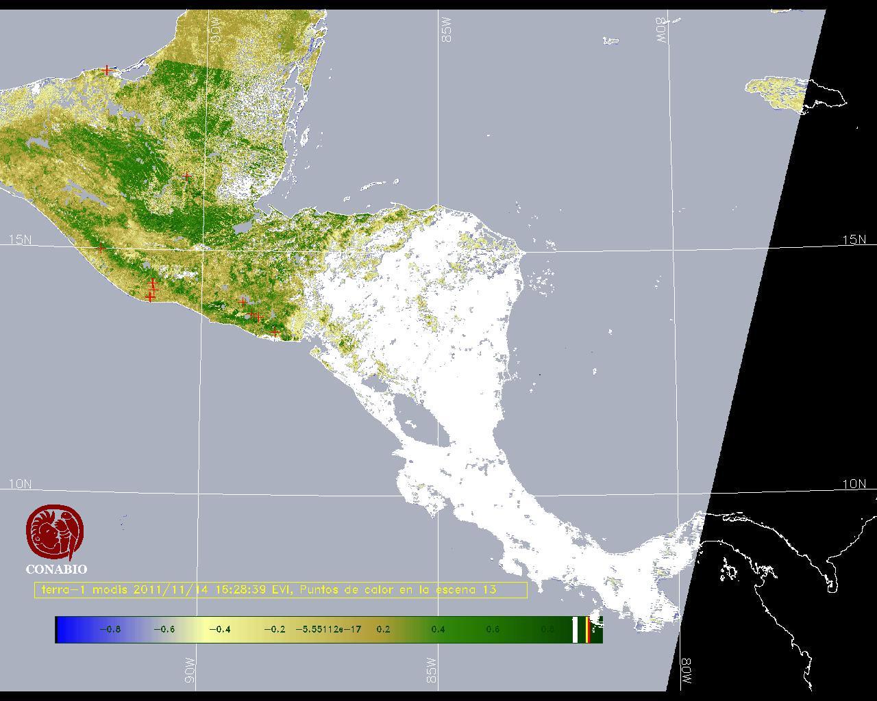 Se considera como punto de calor al elemento espacial mínimo de la imagen (pixel) que reporta una temperatura elevada. Para las imágenes diurnas la temperatura mínima considera es de 42C y para las imágenes nocturnas es de 25C. |