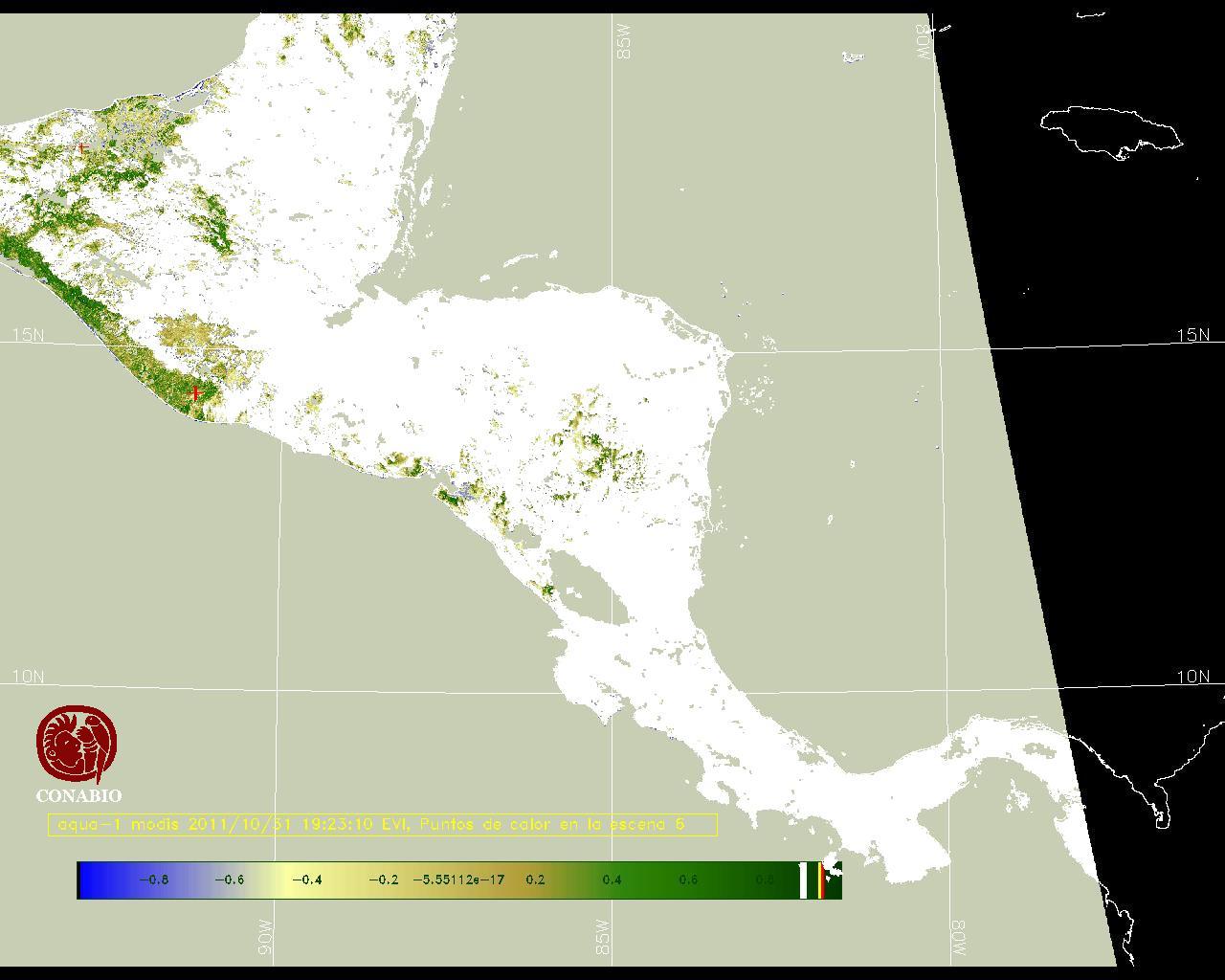 Se considera como punto de calor al elemento espacial mínimo de la imagen (pixel) que reporta una temperatura elevada. Para las imágenes diurnas la temperatura mínima considera es de 42C y para las imágenes nocturnas es de 25C. |