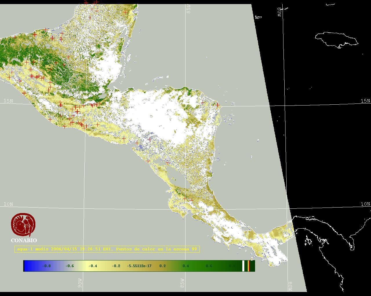 Se considera como punto de calor al elemento espacial mínimo de la imagen (pixel) que reporta una temperatura elevada. Para las imágenes diurnas la temperatura mínima considera es de 42C y para las imágenes nocturnas es de 25C. |