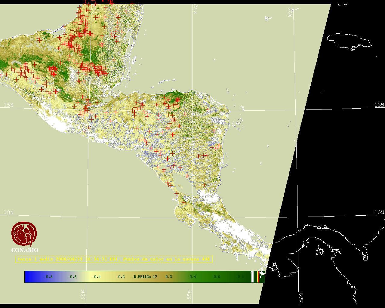 Se considera como punto de calor al elemento espacial mínimo de la imagen (pixel) que reporta una temperatura elevada. Para las imágenes diurnas la temperatura mínima considera es de 42C y para las imágenes nocturnas es de 25C. |