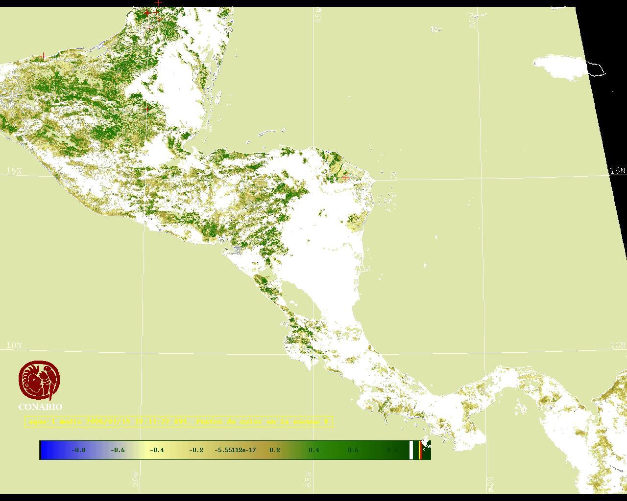 Los valores del índice van de -1 a 1, entre más cercano al valor 1 la vegetación presenta mayor vigor. Los índices de vegetación son utilizados para conocer el comportamiento de la vegetación tanto espacial como temporal. |