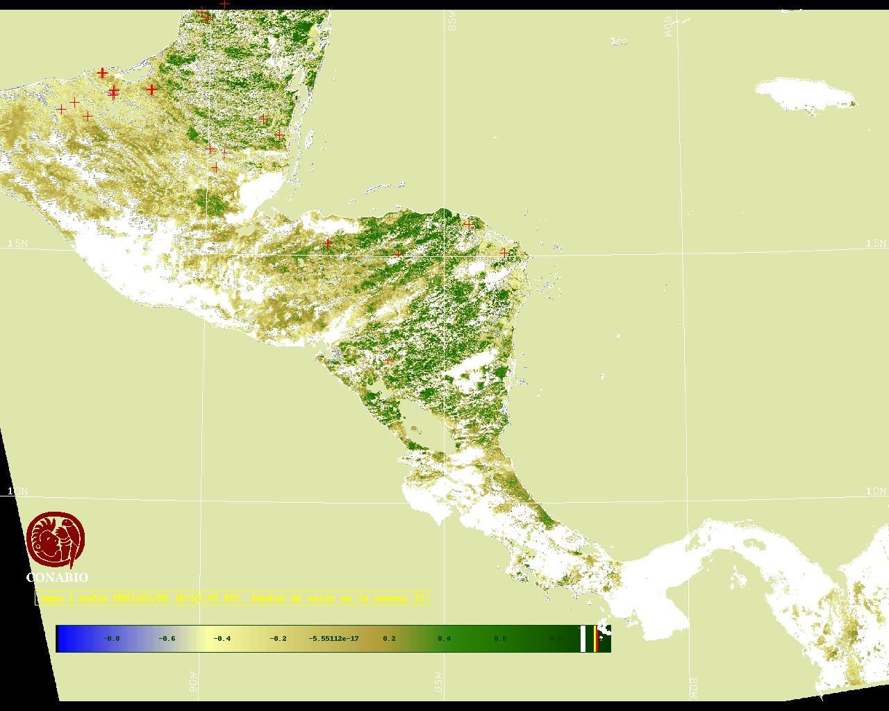 Se considera como punto de calor al elemento espacial mínimo de la imagen (pixel) que reporta una temperatura elevada. Para las imágenes diurnas la temperatura mínima considera es de 42C y para las imágenes nocturnas es de 25C. |