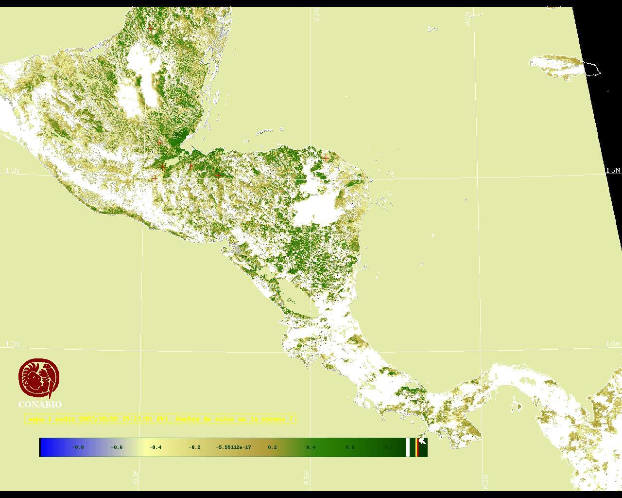 Los valores del índice van de -1 a 1, entre más cercano al valor 1 la vegetación presenta mayor vigor. Los índices de vegetación son utilizados para conocer el comportamiento de la vegetación tanto espacial como temporal. |