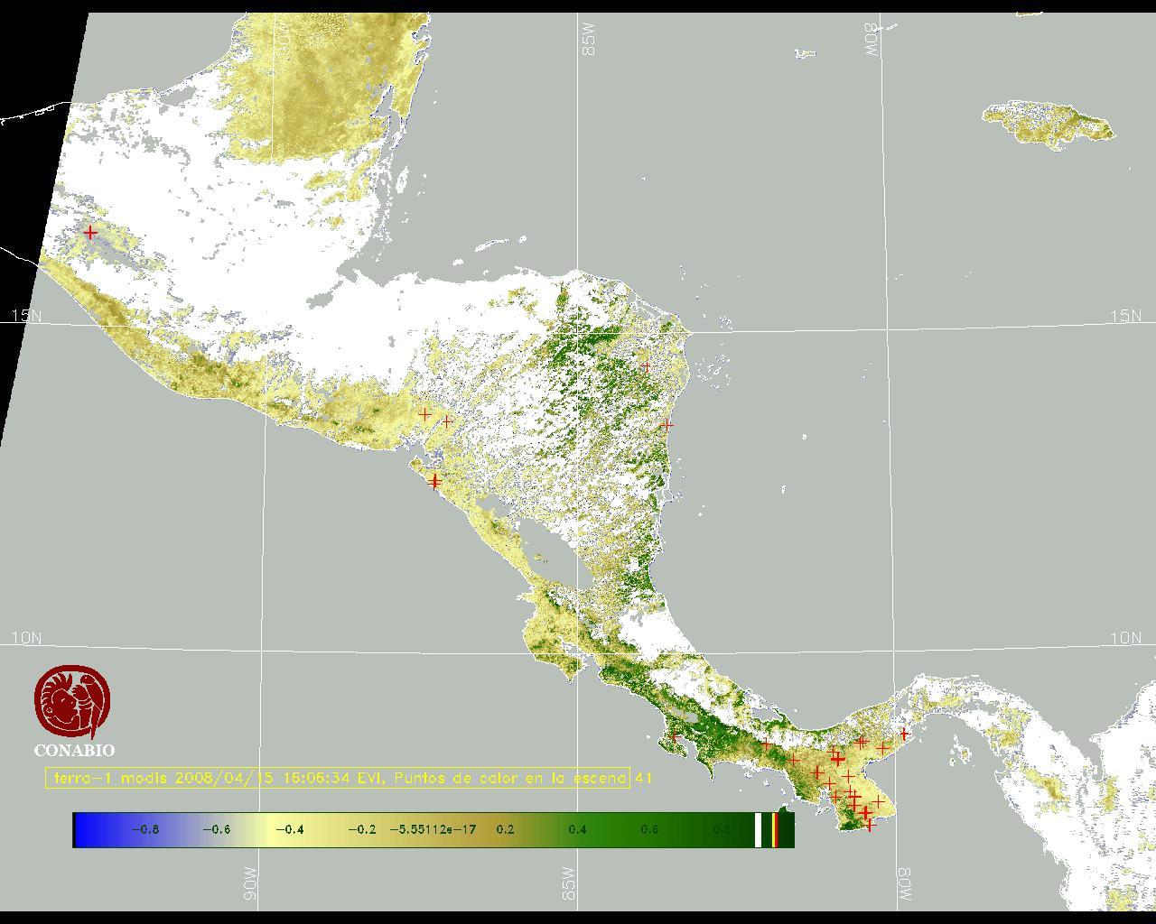 Se considera como punto de calor al elemento espacial mínimo de la imagen (pixel) que reporta una temperatura elevada. Para las imágenes diurnas la temperatura mínima considera es de 42C y para las imágenes nocturnas es de 25C. |