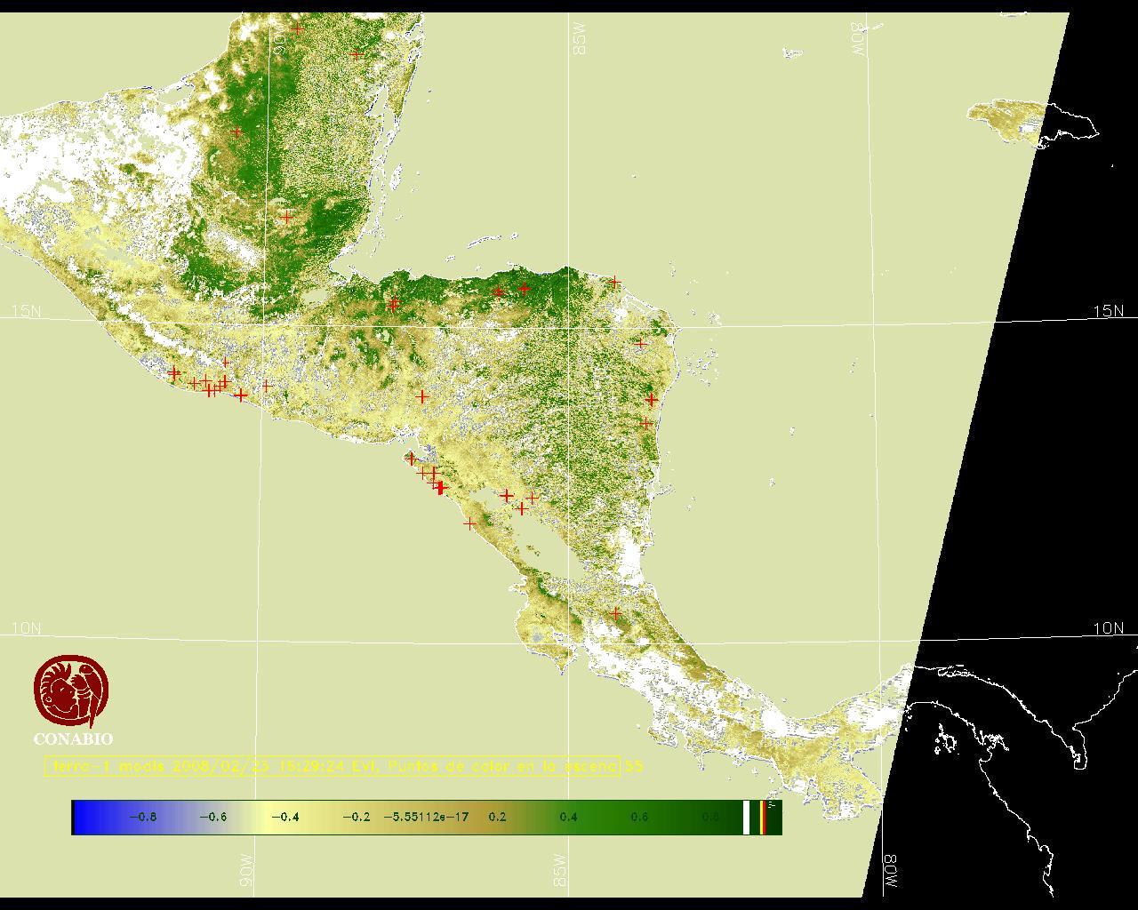 Los valores del índice van de -1 a 1, entre más cercano al valor 1 la vegetación presenta mayor vigor. Los índices de vegetación son utilizados para conocer el comportamiento de la vegetación tanto espacial como temporal. |