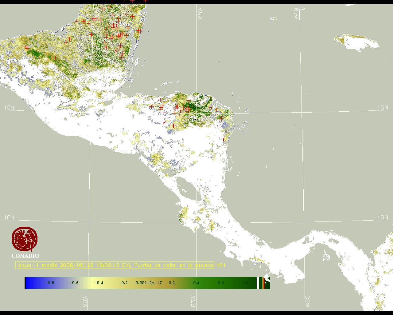 Se considera como punto de calor al elemento espacial mínimo de la imagen (pixel) que reporta una temperatura elevada. Para las imágenes diurnas la temperatura mínima considera es de 42C y para las imágenes nocturnas es de 25C. |