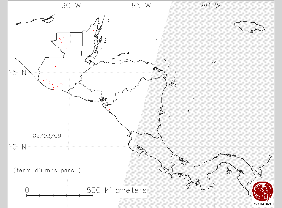 Se considera como punto de calor al elemento espacial mínimo de la imagen (pixel) que reporta una temperatura elevada. Para las imágenes diurnas la temperatura mínima considera es de 42C y para las imágenes nocturnas es de 25C. |
