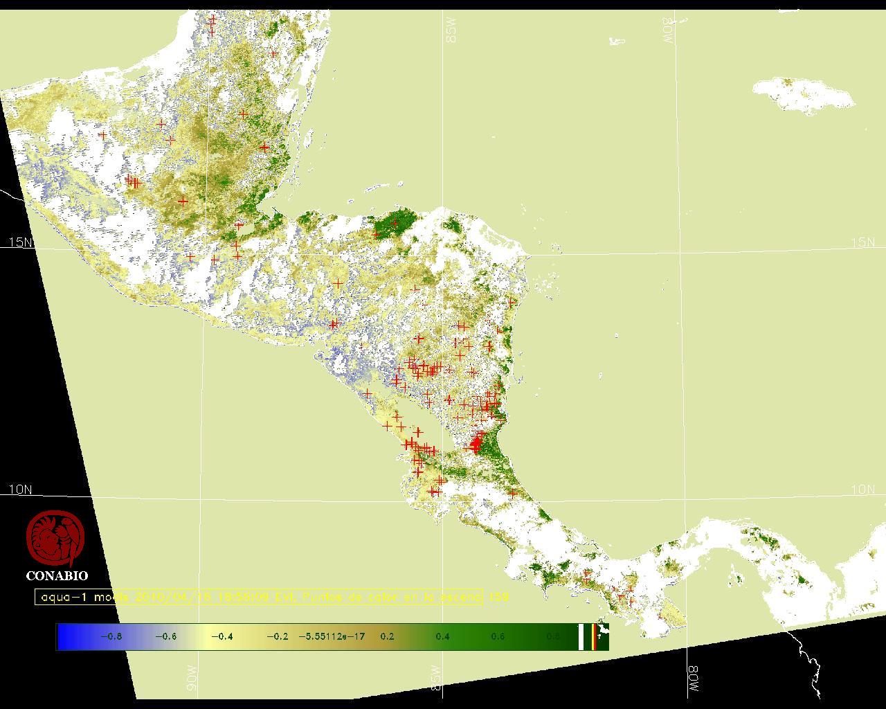 Se considera como punto de calor al elemento espacial mínimo de la imagen (pixel) que reporta una temperatura elevada. Para las imágenes diurnas la temperatura mínima considera es de 42C y para las imágenes nocturnas es de 25C. |