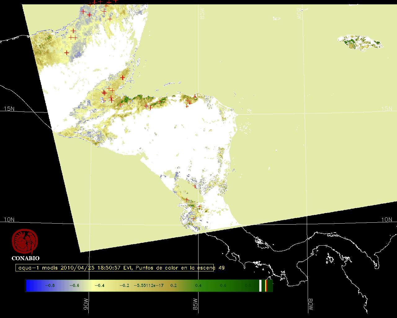 Se considera como punto de calor al elemento espacial mínimo de la imagen (pixel) que reporta una temperatura elevada. Para las imágenes diurnas la temperatura mínima considera es de 42C y para las imágenes nocturnas es de 25C. |